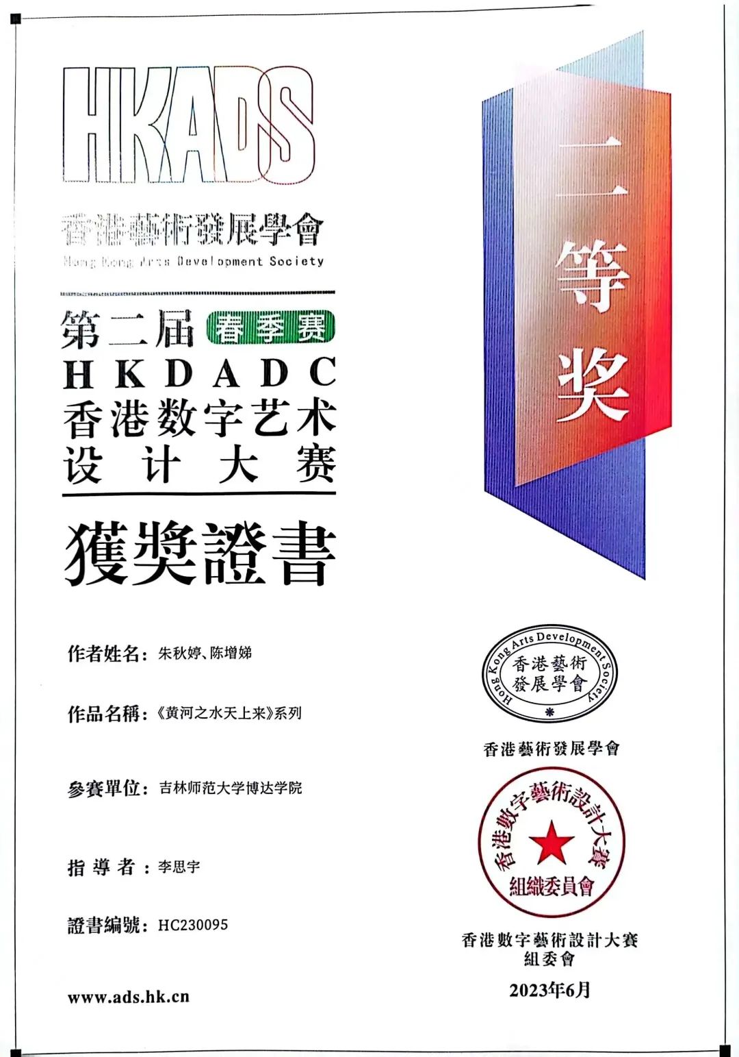 朱秋婷,陈增娣两位同学创作的《黄河之水天上来》系列,在第二届春季赛香港数字艺术设计大赛中荣获二等奖。