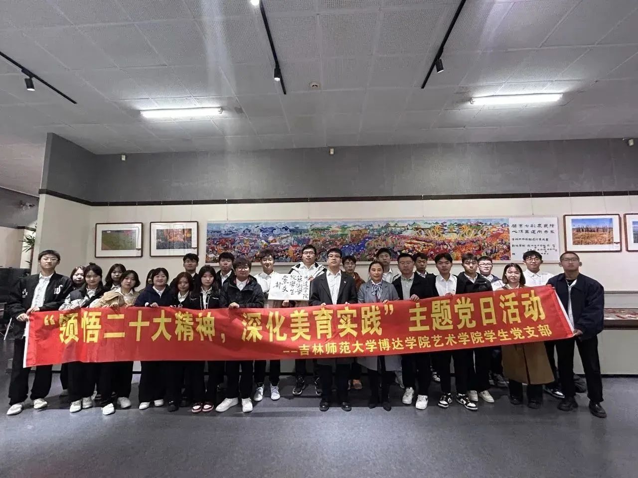 2023年10月15日,为深入开展学习习近平新时代中国特色社会主义思想,贯彻落实党的二十大精神,艺术学院学生党支部组织全体在校学生党员与青年学生干部,深入四平战役纪念馆、四平市博物馆(黑土地艺术展),围绕“领悟二十大精神,深入美育实践”这一主题,开展红色教育党日实践活动。艺术学院专职教师李天阁老师对活动中展览作品的艺术性向参与学生做出详细分析和指导。