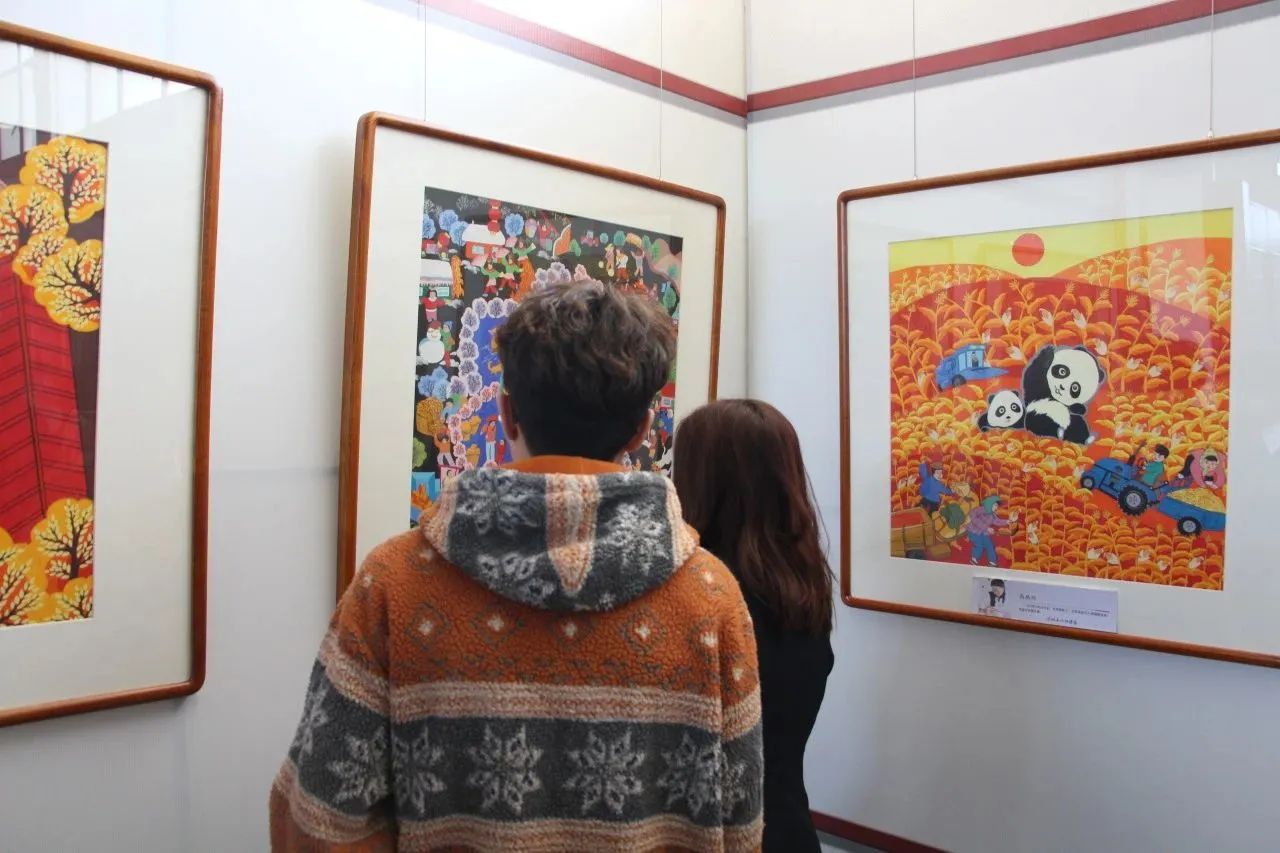 艺术展的三大展区主要为根雕、葫芦雕、石雕等独具地域文化特色的作品;农民画、工笔国画、剪纸等文创作品;书法、摄影、篆刻等常规艺术作品。展现出黑土大地百花齐放,英雄四平人文荟萃的壮丽景色和无尽魅力,将黑土地的美丽和脆弱性展现得淋漓尽致,让同学们感受到了艺术与环境保护的紧密联系。