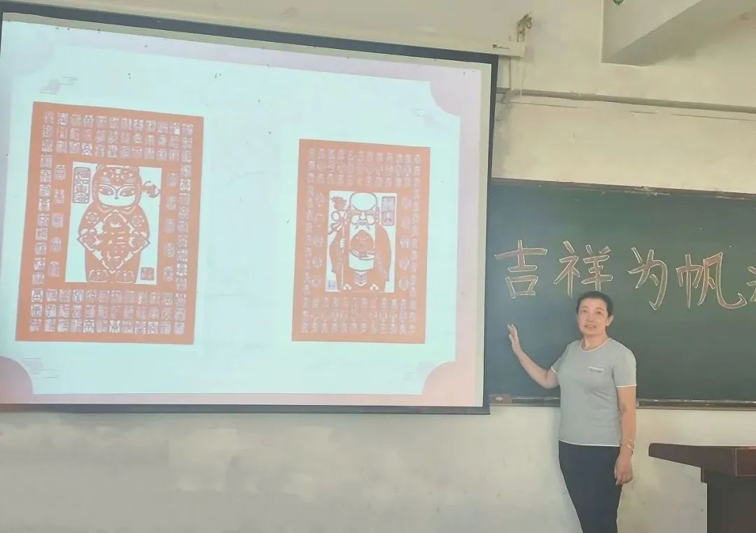 张璐副教授采用提问导入的形式,通过“剪纸的起源”、“剪纸的应用范围”等问题,结合“天官赐福、福禄寿三星、佛手、芙蓉、莲花、葫芦”等剪纸作品,讲述了剪纸艺术是如何寄托着劳动人民美好的愿望等内容。