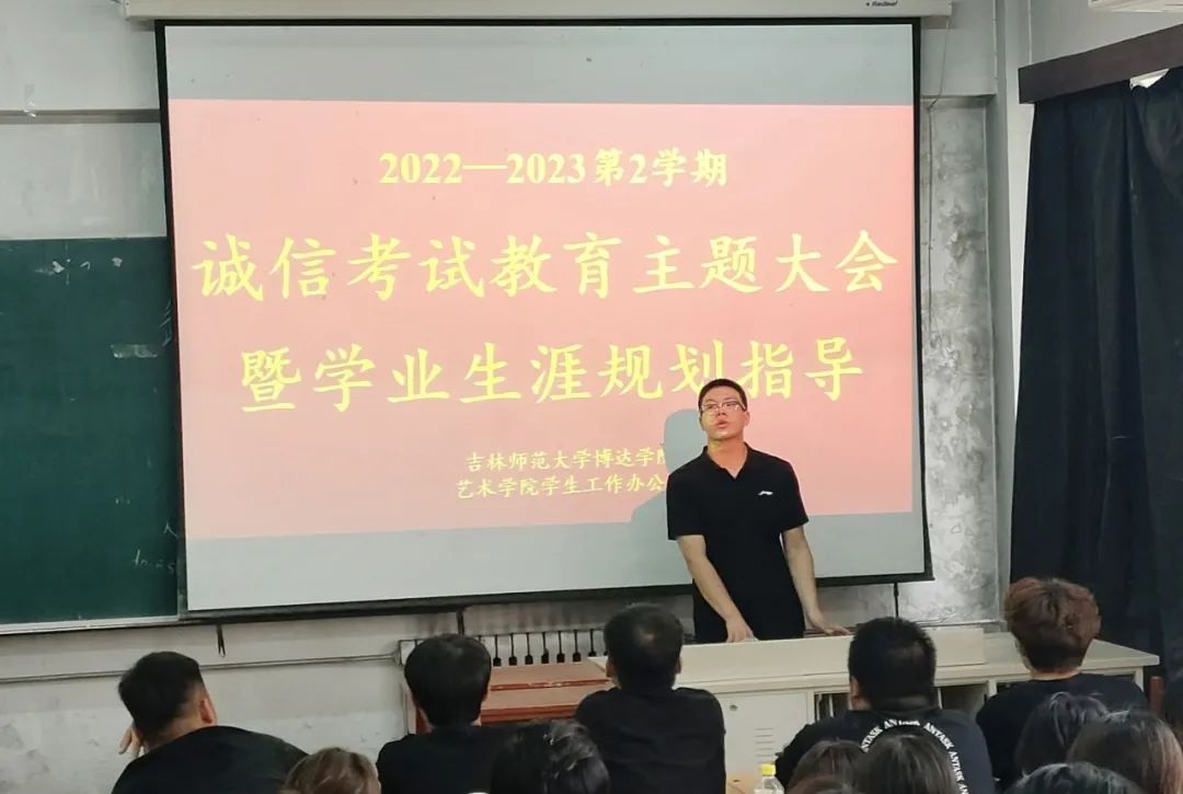 为迎接即将来临的期末考试,艺术学院于6月26日,组织2022级艺术学院全体同学在2202教室进行考试诚信大会讲解。会议由辅导员毕云龙老师主讲。