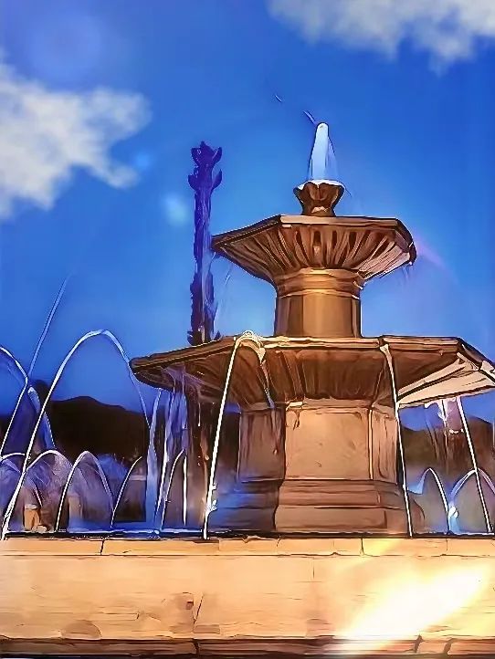 喷泉喷出的泉水代表了知识像喷泉一般喷涌而出,寓意博达学子文思泉涌,学业高升。
