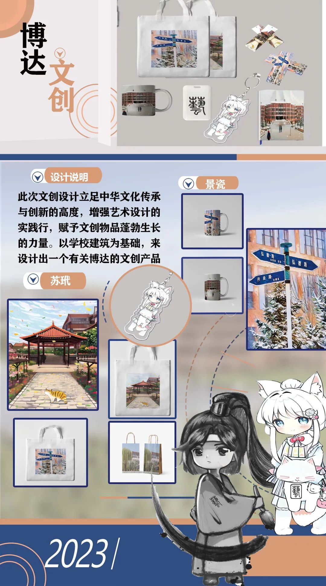 以学校建筑为基础,来设计出一个宣传介绍博达的文创产品