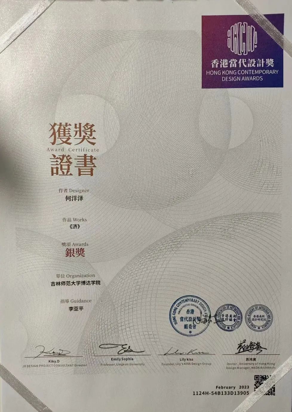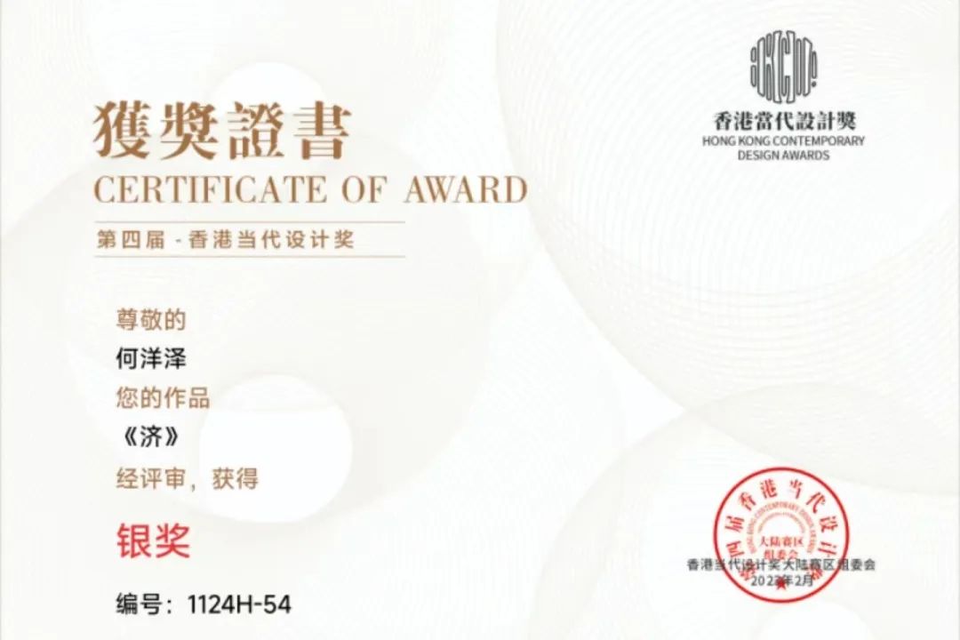 2023年2月,在由香港美术设计协会、香港美术设计研究院主办的第四届香港当代设计奖并获得国家级银奖;