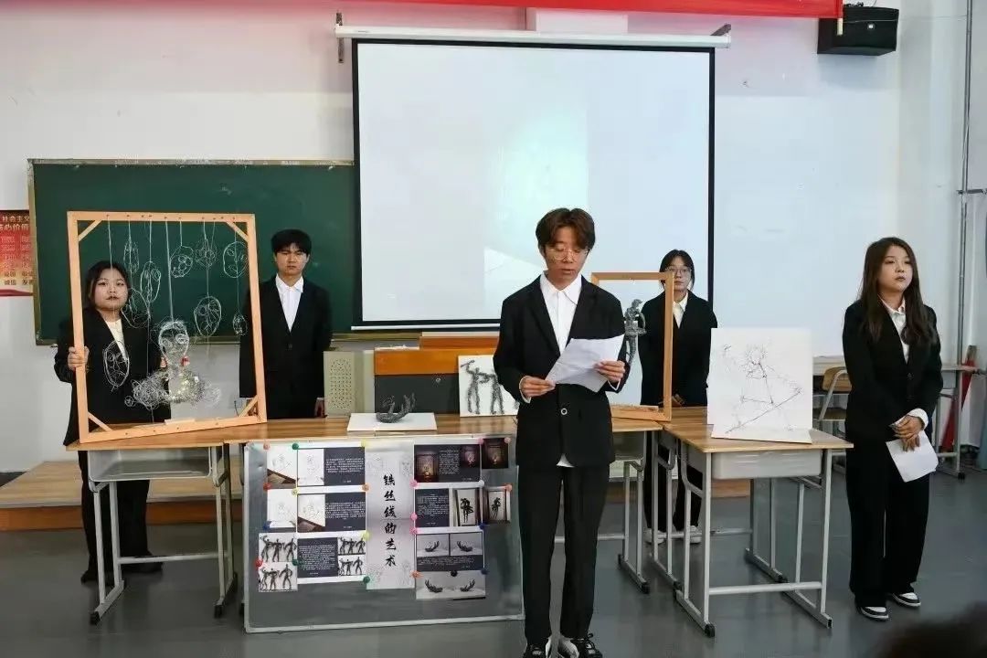 二等奖作品《铁丝·线的艺术》:通过对铁丝线的拉伸、组合、旋转、环绕等来展现出其中的奥妙,表达出创作灵感。