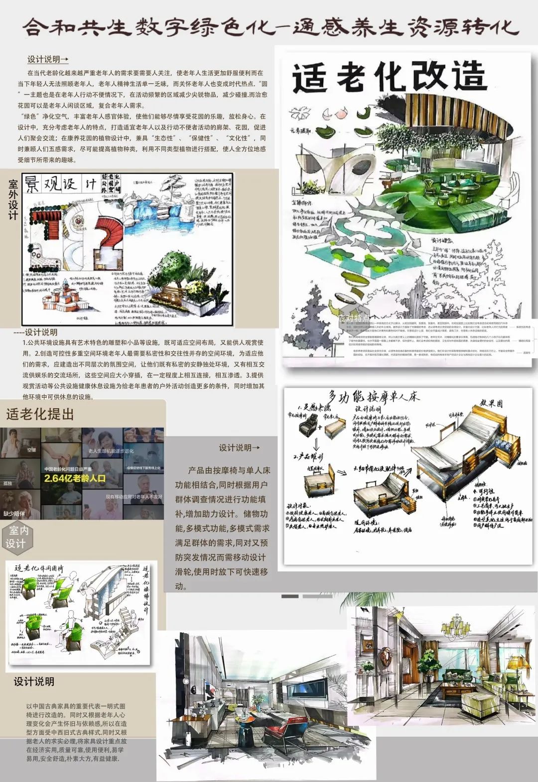 三等奖作品《合和共生数字绿色化-通感养生资源转化》:面对人口老龄化发展趋势,通过绿色发展主题提供其解决方法,满足老龄化发展需求,提升老年人幸福感。