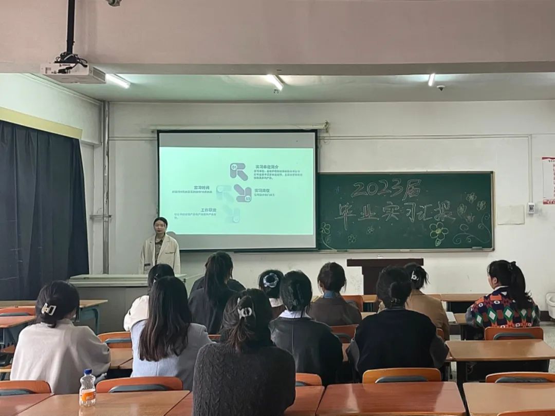 汇报会上,同学们分享实习见闻、工作经验、学习体会,并与在场的老师们进行互动交流。