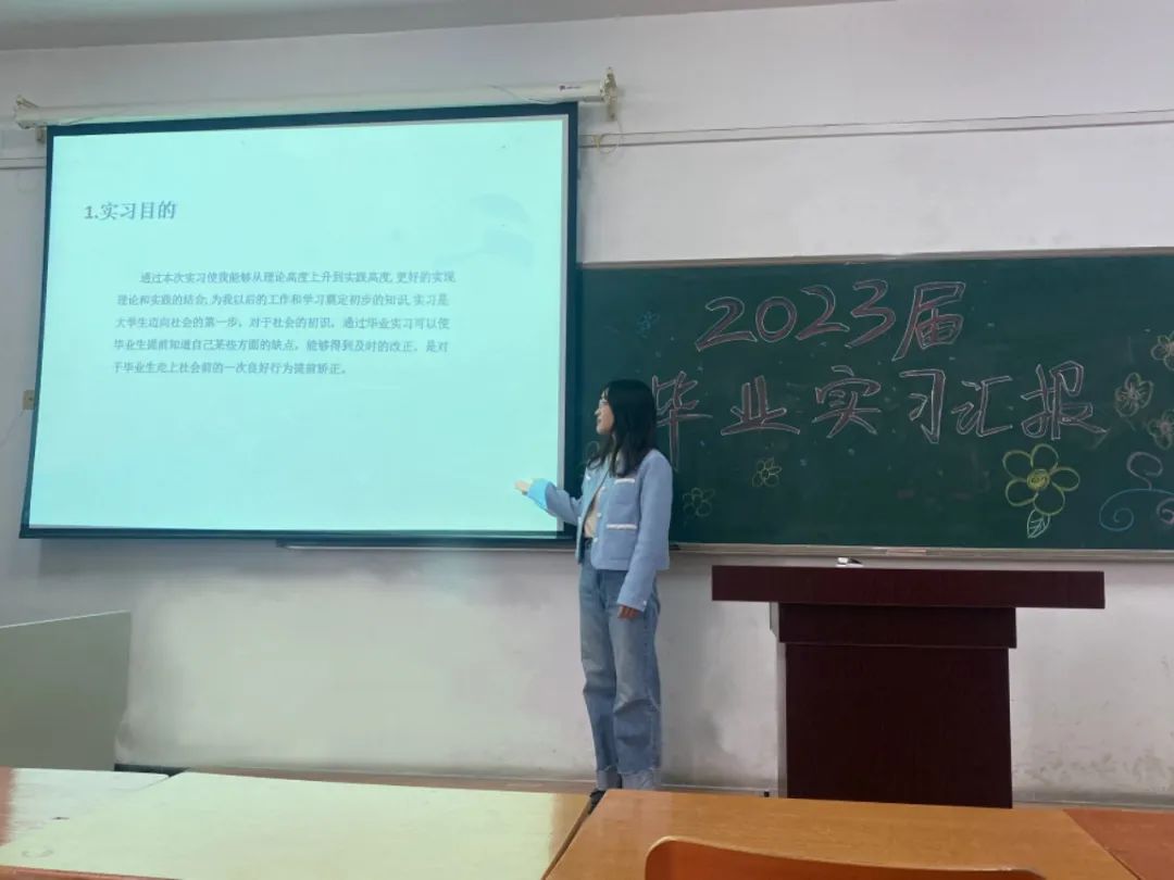 李艳花主任最后做总结发言。她表示,通过今天的汇报会,让我们领略到了艺术学院2023届毕业生的风采。同学们交流实习体会、汇总经验心得、分享实践收获,相信实习期间的“小试牛刀”定会为工作后“大显身手”奠定坚实基础。希望同学们走向工作岗位后,继续发扬博达学子刻苦钻研、敬业奉献的优良作风,为社会做出积极贡献。