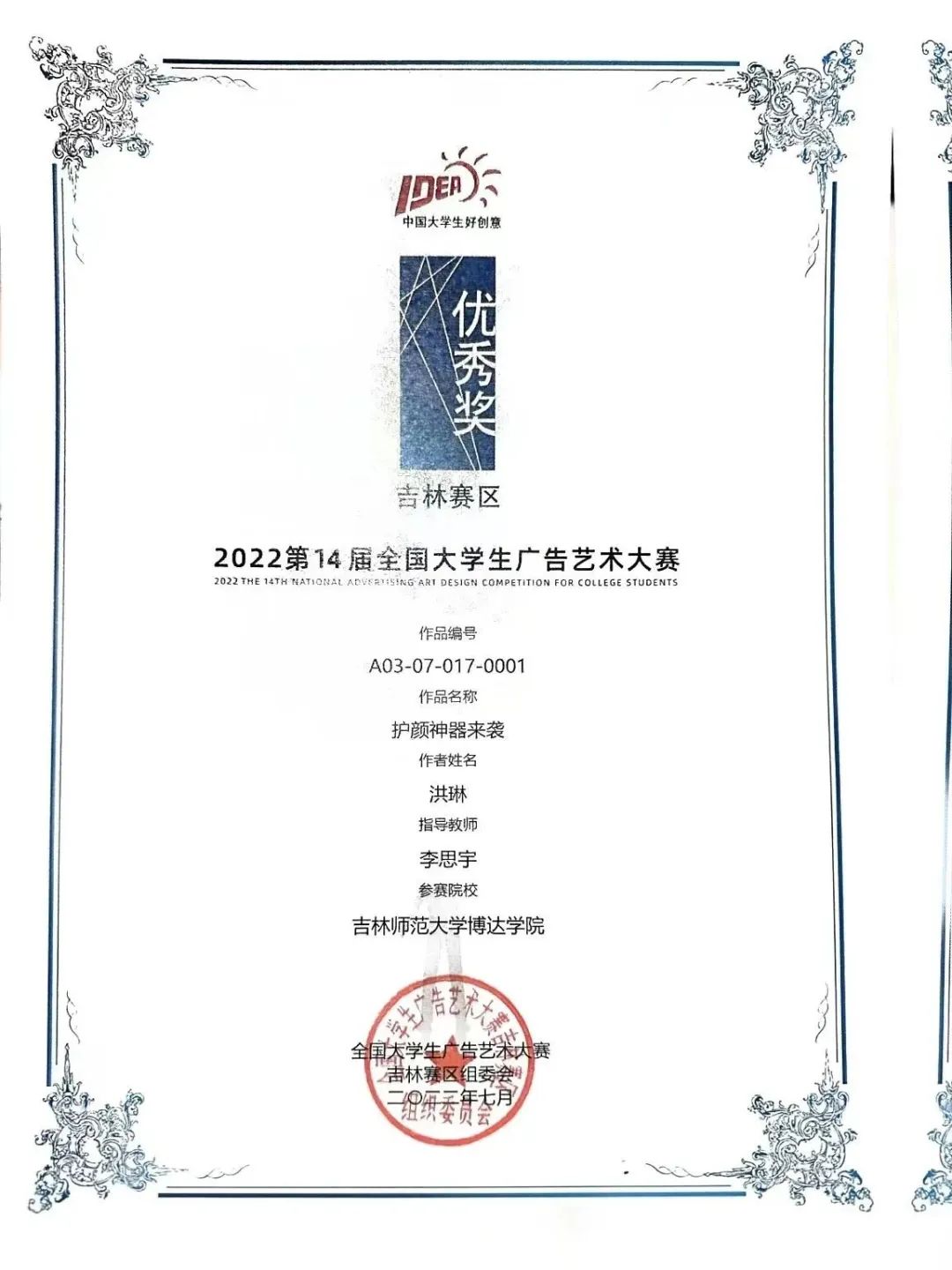 2022年9月第十四届全国大学生广告艺术大赛吉林赛区优秀奖