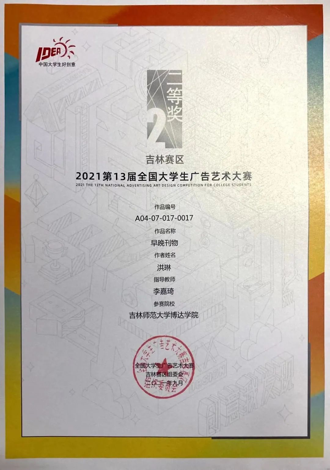 2021年9月第十三届全国大学生广告艺术大赛吉林赛区二等奖