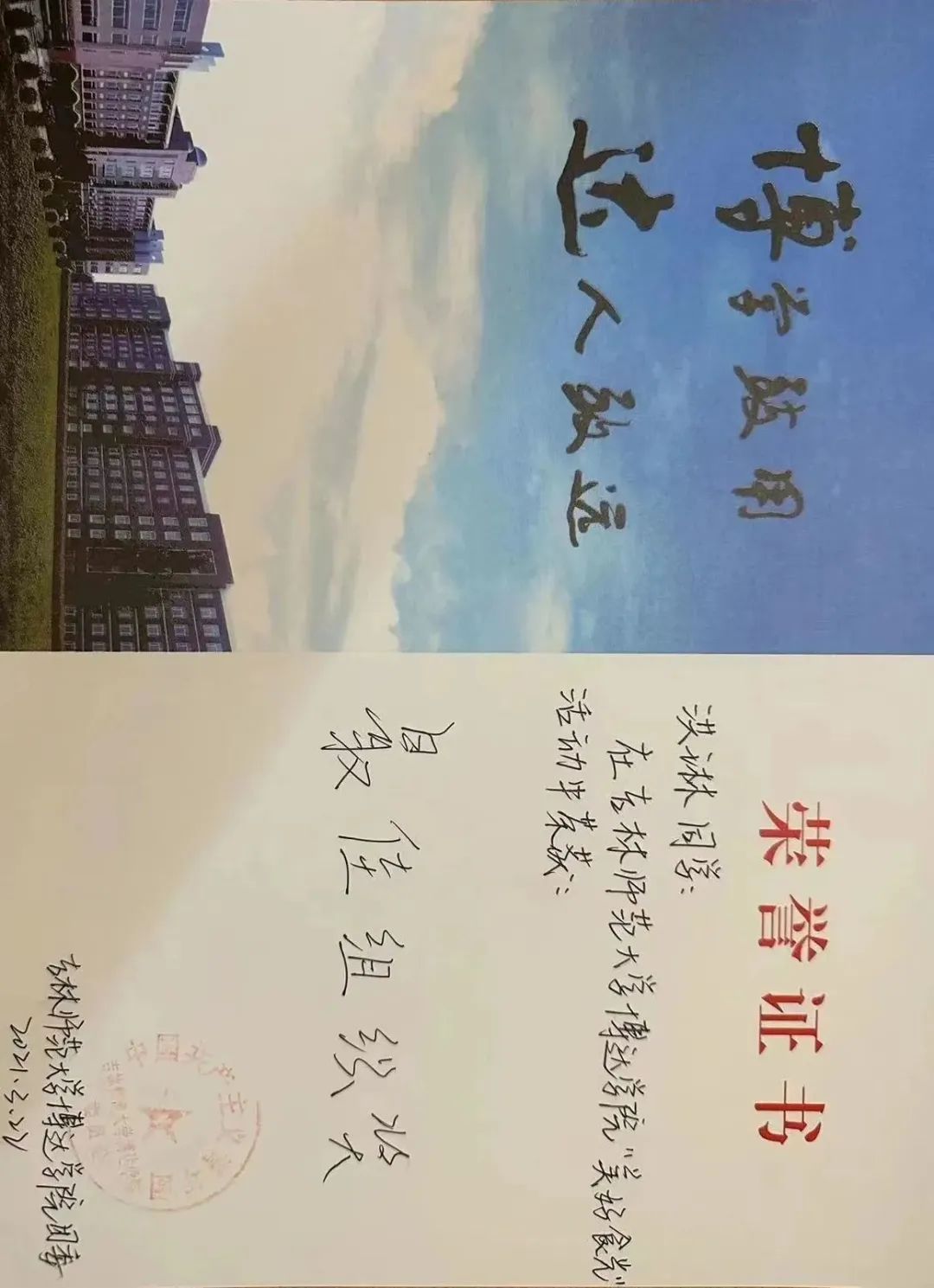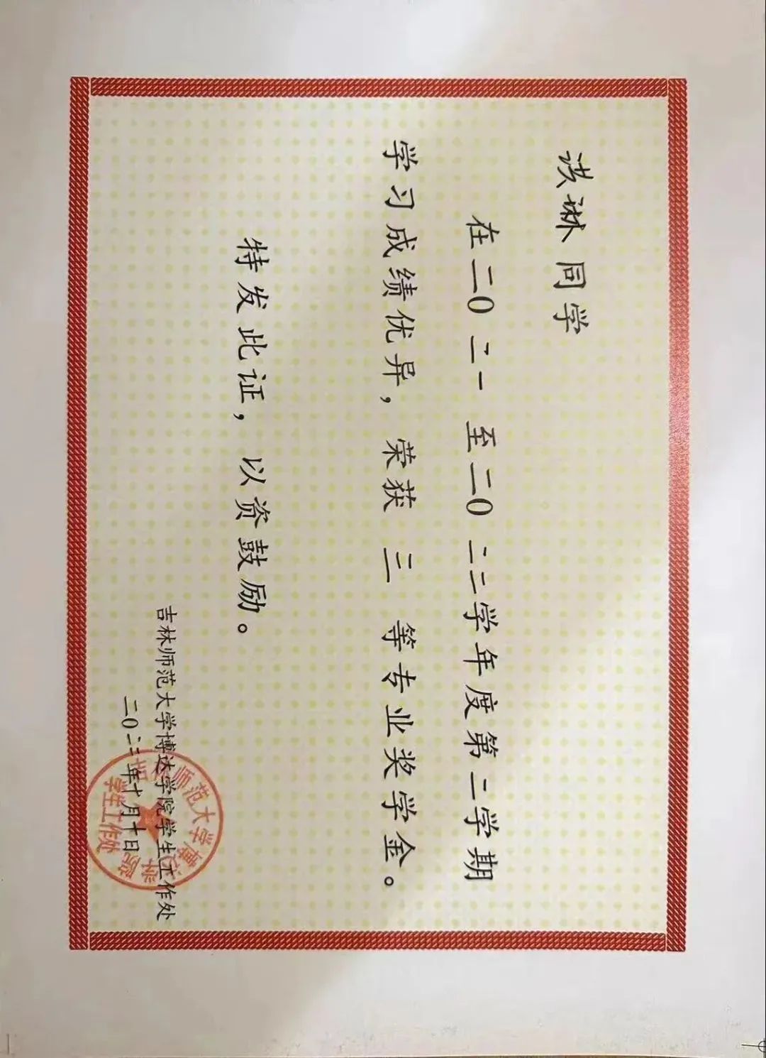 2021年12月第三届吉林省冰雪创意大赛三等奖。
