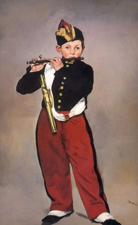 推荐理由:巴黎奥赛博物馆画中描绘的是近卫军乐队里的一位少年吹笛手的肖像。画家在探索形与色的统一时,注意到人物个性特征的刻画。在色彩上追求一种稳定的、几乎没有变化的亮面,然后突然转入暗部,将人物置于浅灰色、近乎平涂的明亮背景中进行描绘,用比较概括的色块将形体显示出来。在这幅画中没有阴影,没有视平线,没有轮廓线,以最小限度的主体层次来作画,否定了三度空间的深远感。