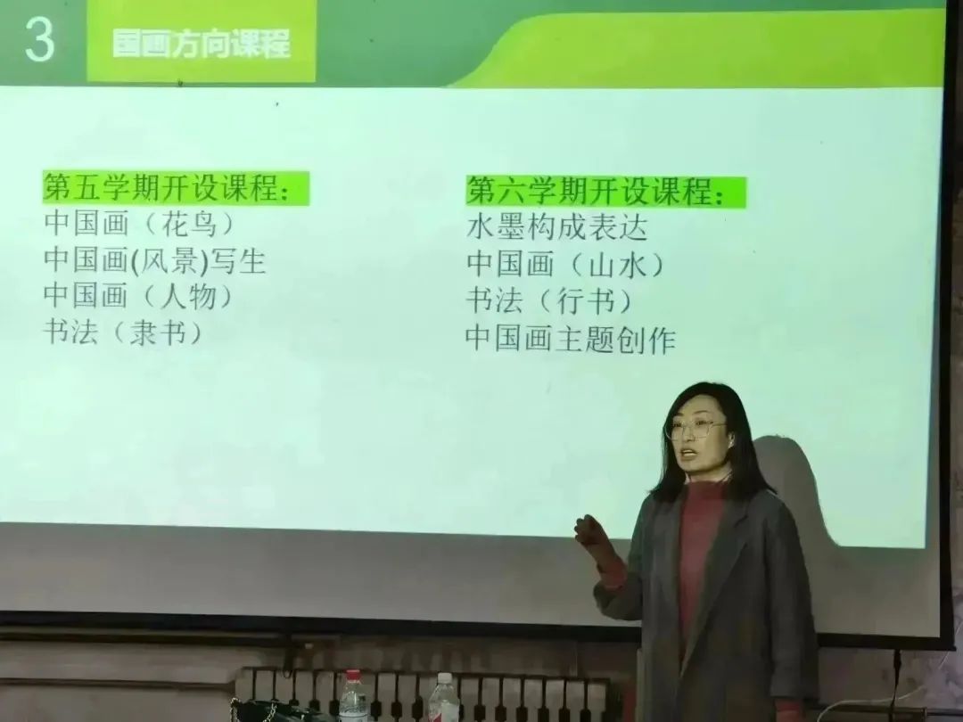 为进一步让艺术学院美术学专业学生根据个人特长和兴趣更好的进行专业定位和学习,艺术学院美术学专业教研室于2023年4月26日,组织2021级美术学专业全体同学在1418教室进行美术学分专业教研活动。