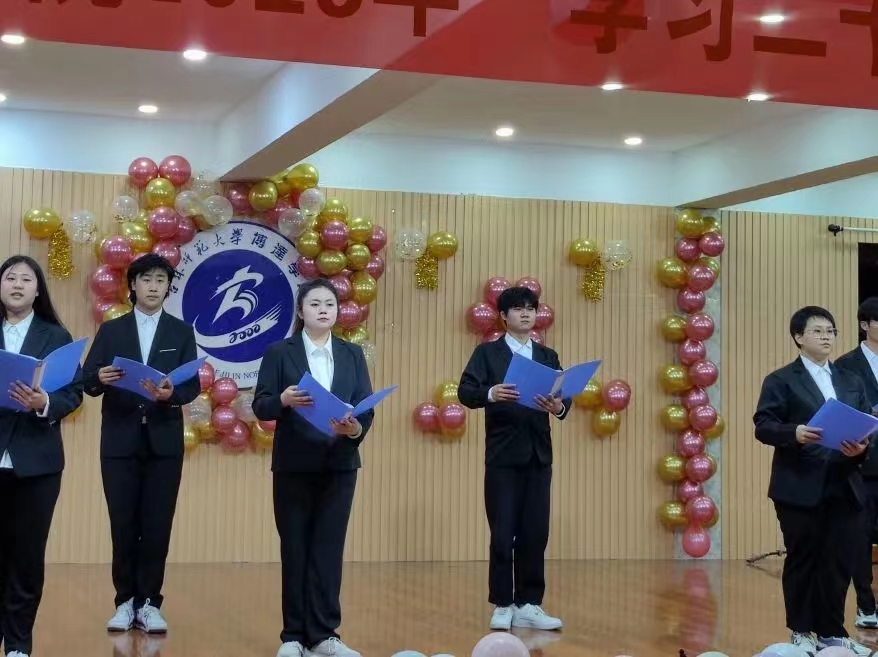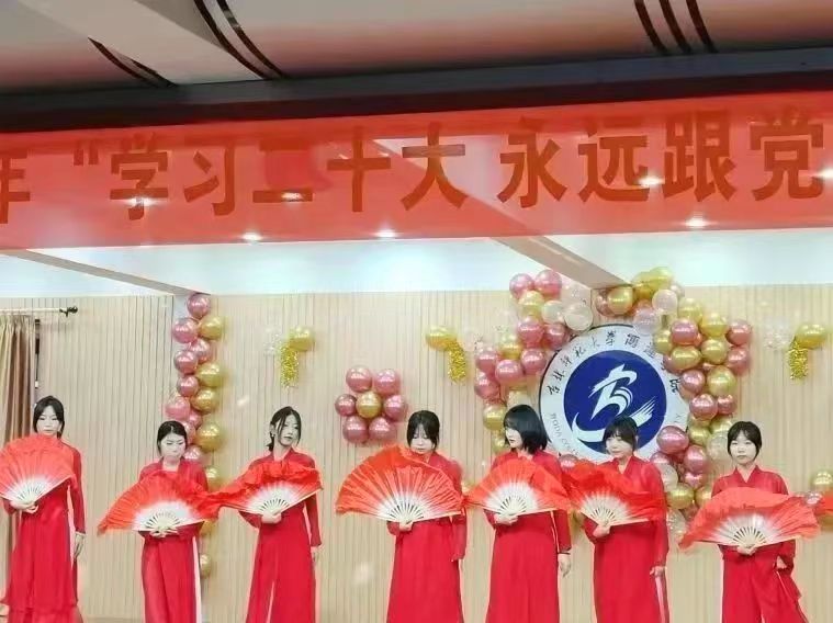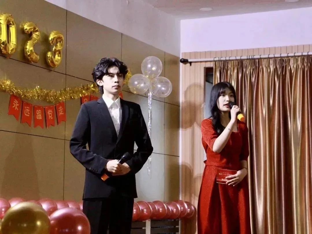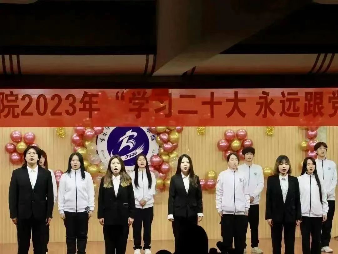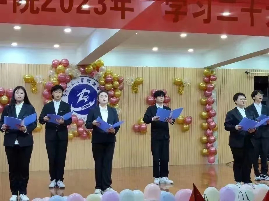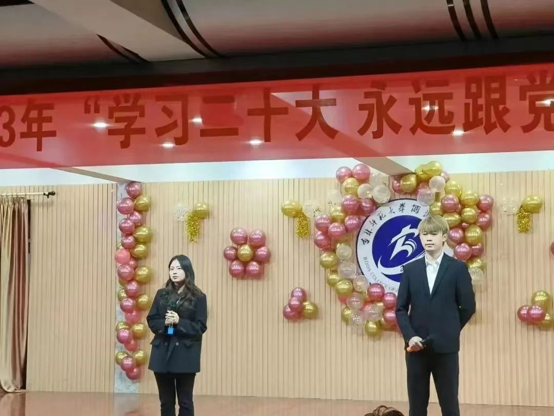蓝图鼓舞人心,号角催人奋进。双人朗诵《庆祝二十大》一句句铿锵有力的诗词,深刻鼓舞和激励着全体青年学子坚定历史自信,增强历史主动性,在党的旗帜下团结协作。