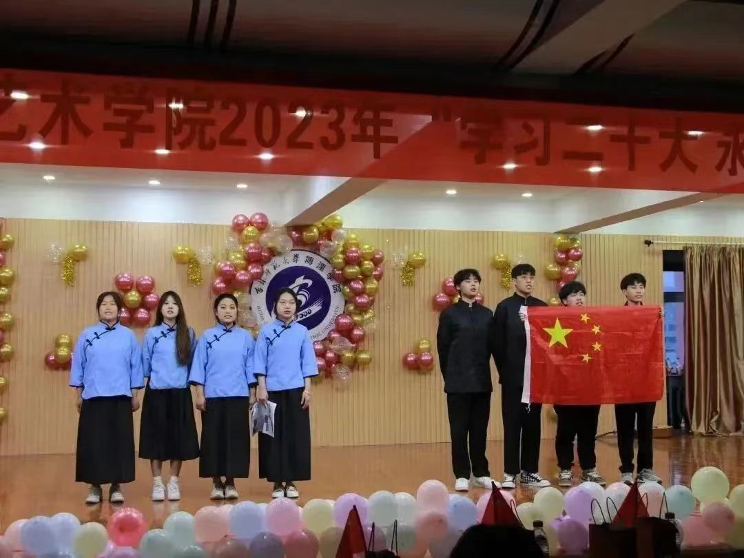 党的二十大是在全党全国各族人民迈上全面建设社会主义现代化国家新征程、向第二个百年奋斗目标进军的关键时刻召开的十分重要的大会,在党和国家的历史中具有极其重要的历史意义。新时代新征程,为深入学习宣传贯彻党的二十大精神,推动习近平新时代中国特色社会主义思想往深里走、往实里走,艺术学院于2023年4月16日召开《学习二十大,永远跟党走,奋进新征程》主题团日活动。出席此次活动的有艺术学院党总支书记、学生工作办公室负责人崔景朋副教授;艺术学院学生党支部书记毕云龙老师;辅导员郑焱老师;行政助理刘芷含老师;以及各学院团学联干部莅临活动现场。