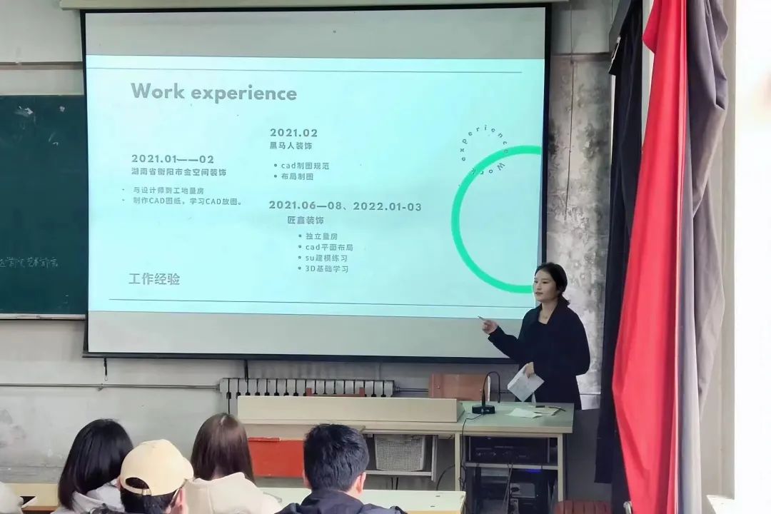 为营造良好学习氛围,彰显榜样力量,为帮助2021级环境设计专业的同学们更好规划校园生活,明确个人学习目标,艺术学院于3月29日14:00在老校区2202教室开展了2021级环境设计学习经验交流会。会议的主讲人是国家奖学金获得者2019级徐彩霞学姐。