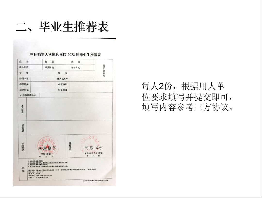 高校毕业生所需推荐表、登记表、离校签字表、三方协议表等的填写注意事项。