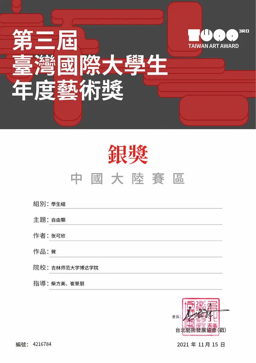 近年来,学院多名教师作品入选全国美展、全国书法展、全国工艺美展、吉林省美展等专业赛事并获奖。