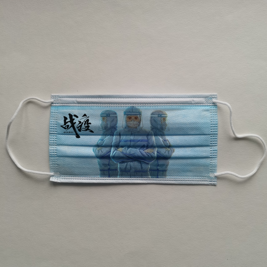设计说明:新型冠状病毒肺炎疫情来势汹汹,甚⾄成为全球性问题,夺去很多⼈的⽣命,也打乱了所有⼈正常的⽣活,医⽤⼝罩成为了战略物资。作品表现了白衣战士抗疫病毒时的状态,红色地图代表我们中国人民团结的标志,飞机及楼房元素代表我们科技强大,爱心元素代表各地区支援疫情区的无私奉献精神,以及左边的花卉代表春暖花开,疫情终将散去。