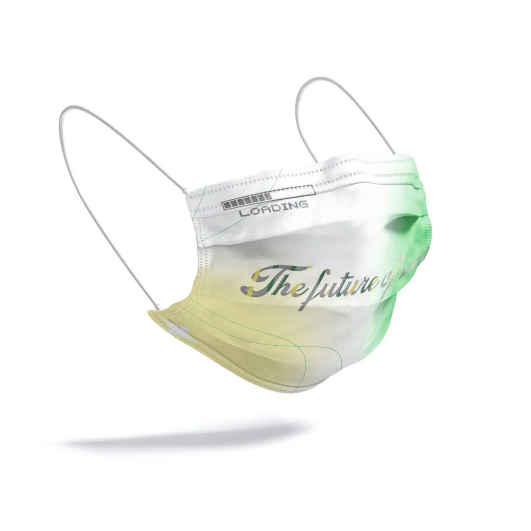 设计说明:春意款款,岁月缓缓,又是一年春意早,“春”为大地生灵带来一抹鲜艳的绿色。绿草绿树,碧水荡漾。那抹绿随着风吹入梦中。抗疫路上一路同行,此次口罩设计,以绿色为主体色调与梦相结合,表达了寄希望于春天,在万物复苏的季节中充满动力与决心克服一切困难战胜疫情。在未来社交中口罩依然会起到重要作用,富有色彩设计的口罩会更加受到青年一代的青睐。