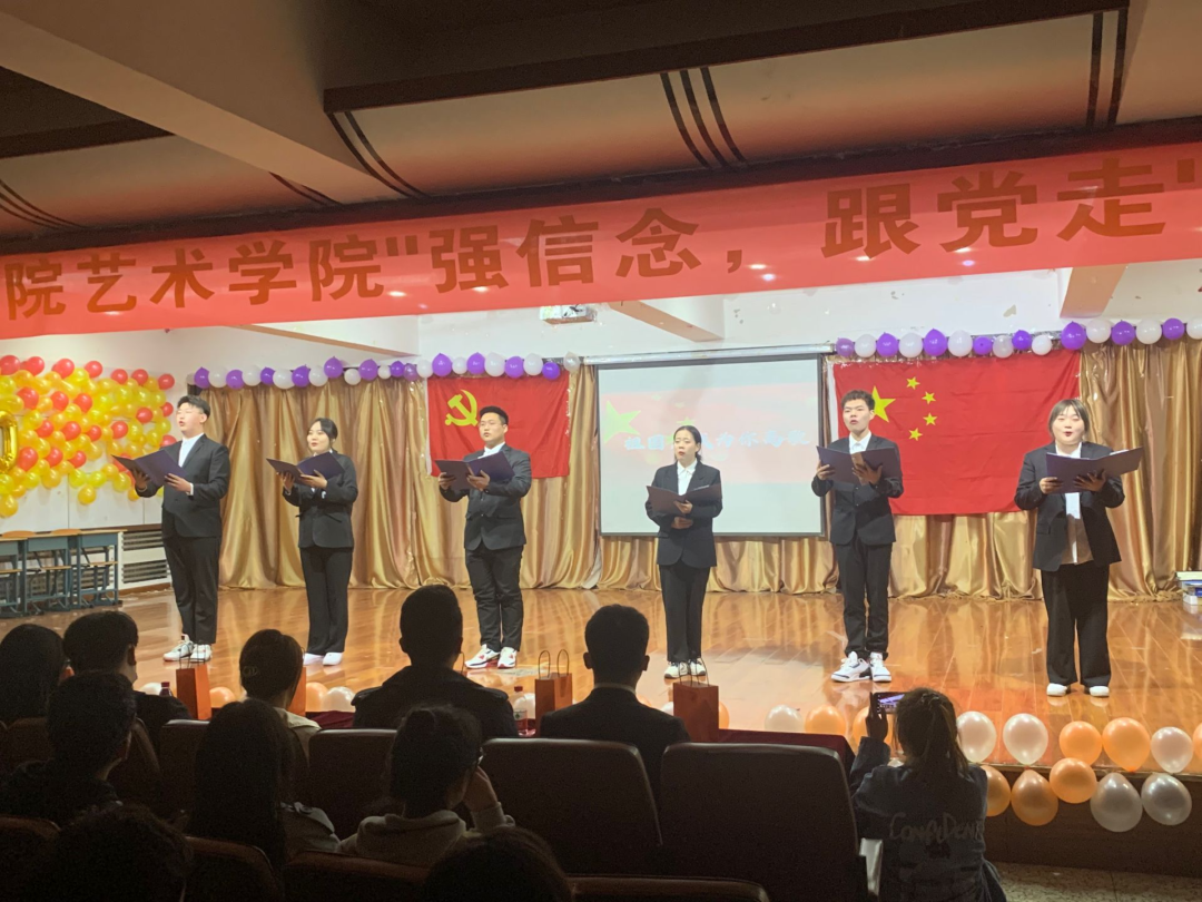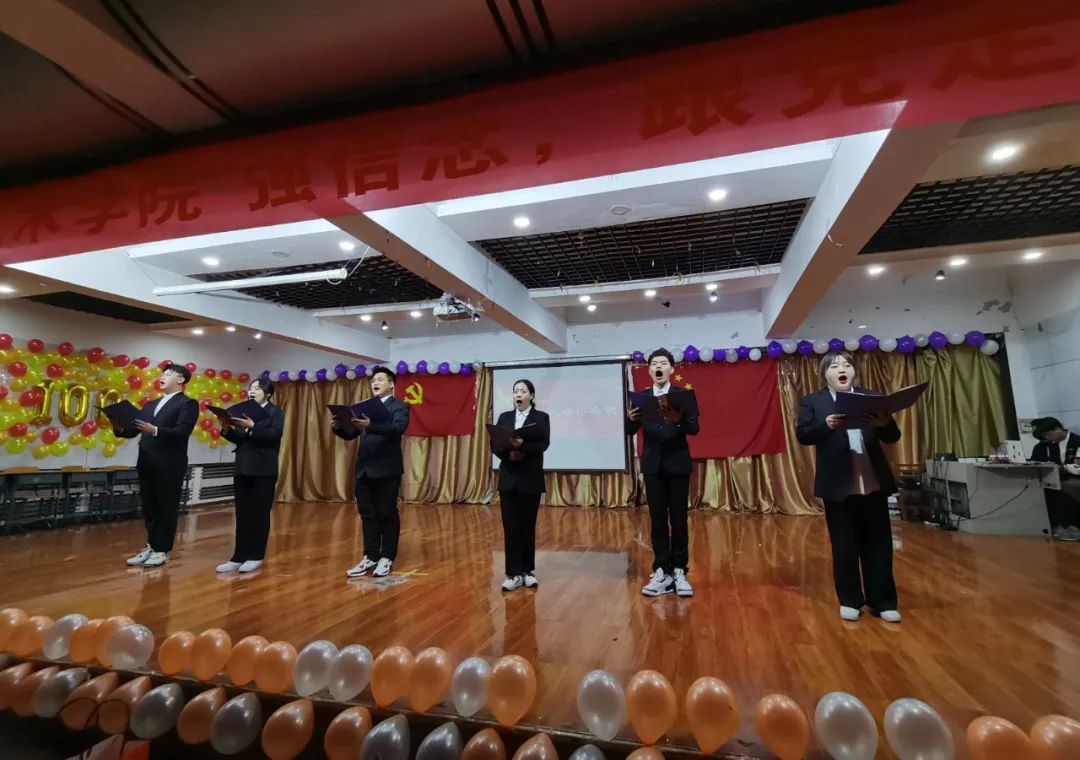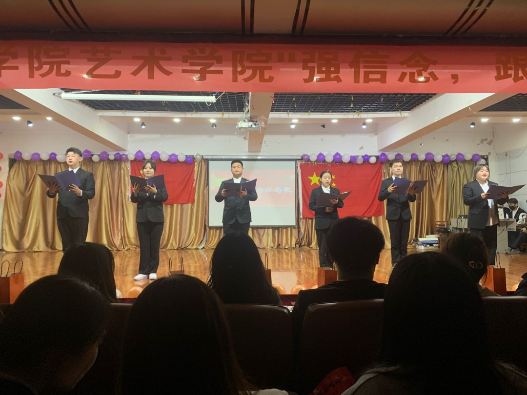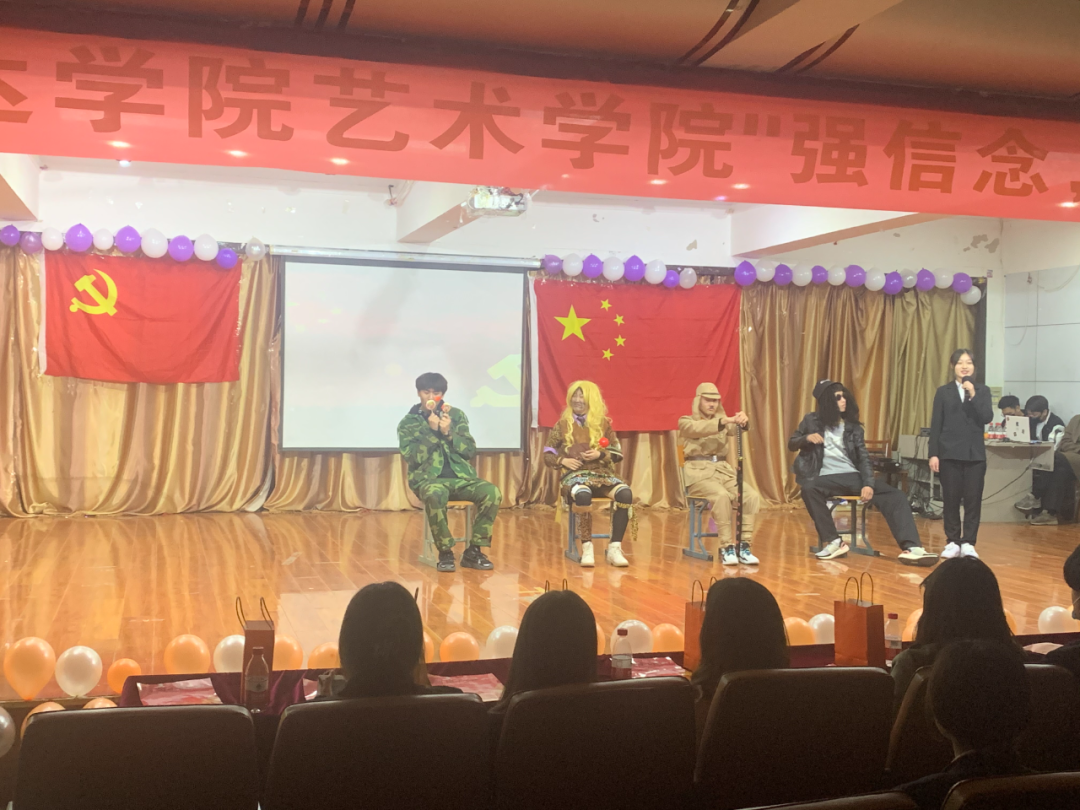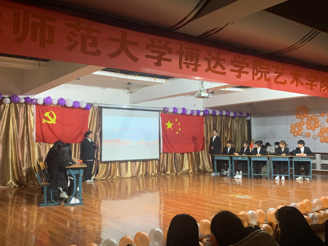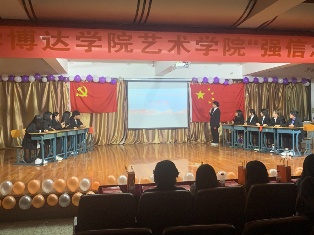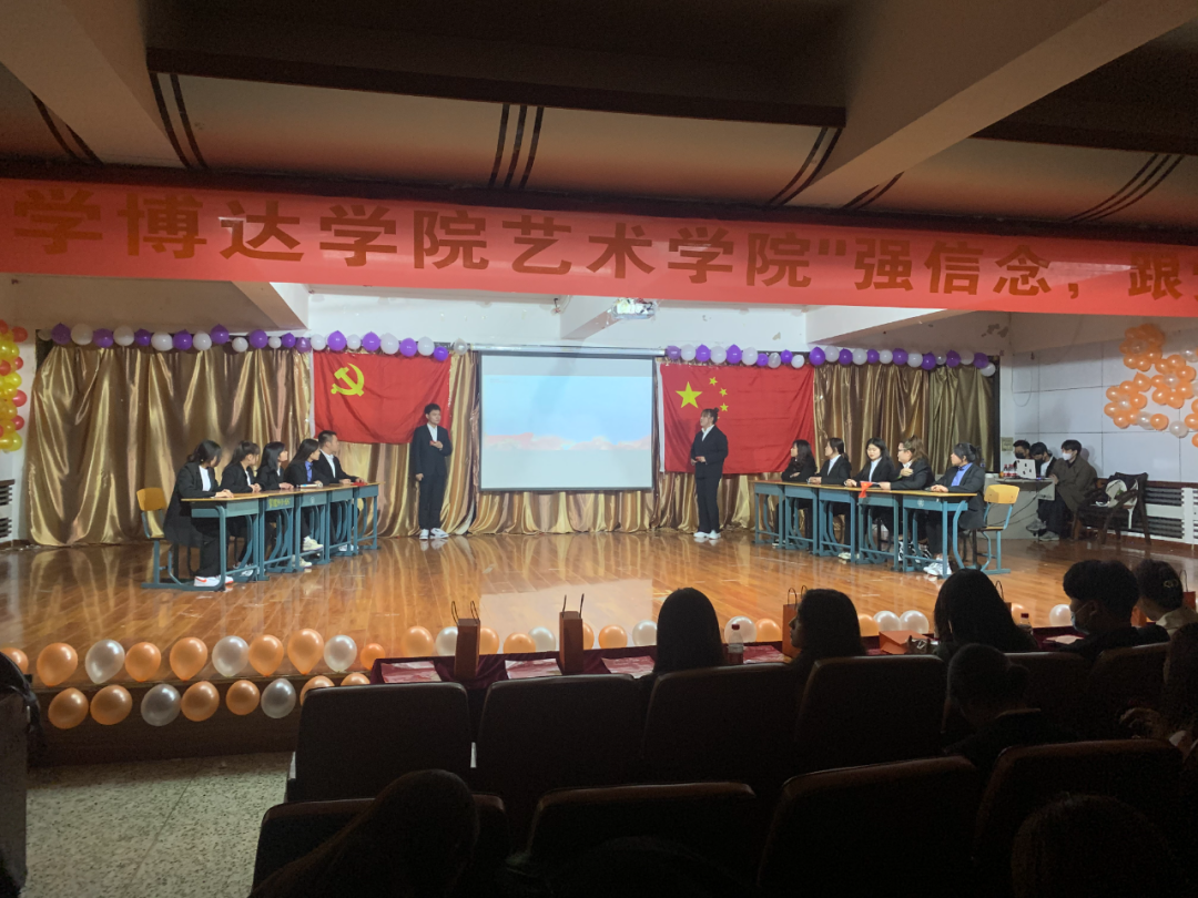 为热烈庆祝中国共产党成立100周年,深入学习贯彻习近平总书记在党史学习教育动员大会上的重要讲话精神,贯彻落实《共青团中央关于在全团开展“学党史、强信念、跟党走”学习教育的通知》精神。2021年4月18日,吉林师范大学博达学院艺术学院于二教六报开展"强信念,跟党走"主题团日活动。