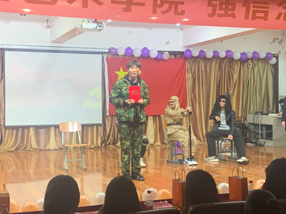 本次活动中的“党史知识竞赛”环节,更是掀起了高潮。活动围绕选择题,填空题,听歌识曲三个环节开展。参赛选手更是激烈抢答,他们那忍俊不禁的答案,让场下的观众笑声连连。经过三场的激烈追逐,20级视觉传达设计二班取得最终的胜利。