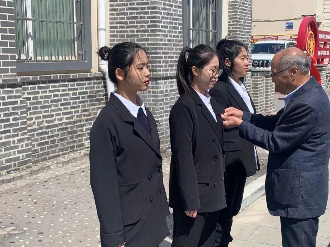 老党员王向东老师为我院新党员的教师代表与学生代表佩戴党徽,同时对新党员提出殷切希望
