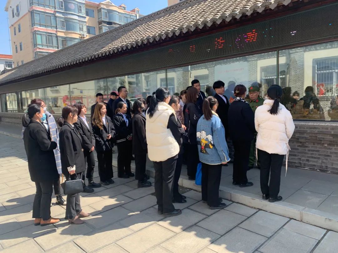 在王向东老师的带领下全体党员参观了约以25米长为基础的红色故事模型长廊