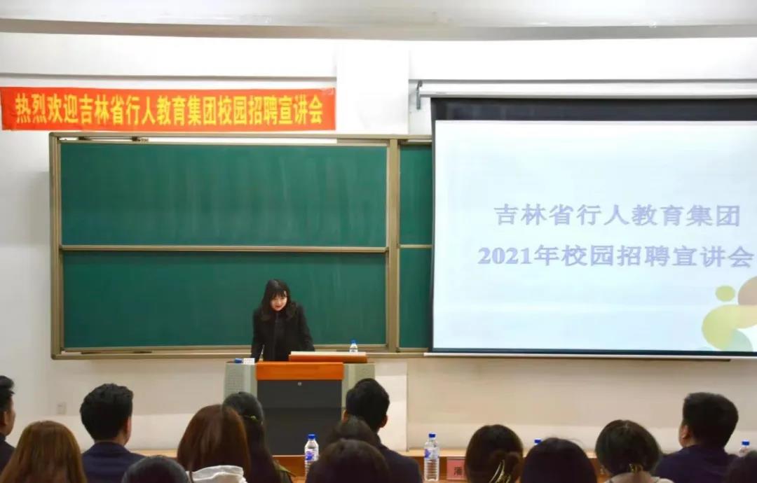 2021年4月14日下午三点,吉林师范大学博达学院艺术学院于综合楼1118教室召开“吉林省行人教育集团2021年校园招聘”宣讲会。