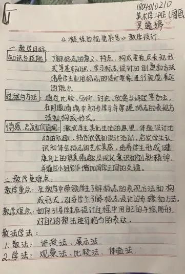 此次实训课程分别为《书法教学技能实训》与《教案设计》。此次实训主要目的是让学生通过互相学习交流,提高书法水平。同时,做到通过对教案撰写的训练和对硬笔书法的培训及评比,使大家了解中小学教案撰写的基本结构及内容,掌握教案设计的基本技巧,达到能够根据对应的美术教材进行教案的设计与撰写。
