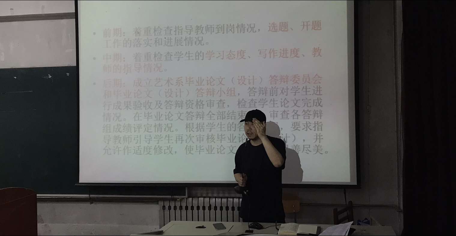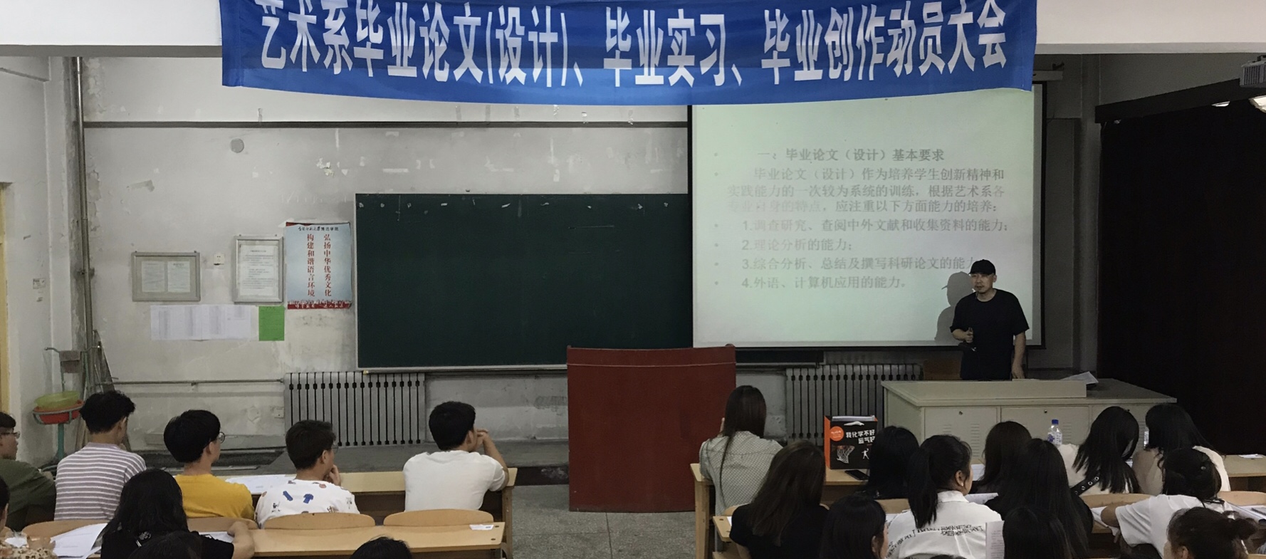 2019年6月19日下午,艺术系在2202教室举行16级毕业论文、毕业设计、毕业实习及毕业创作动员大会。会议由艺术系主任刘松松主持。艺术系16级全体学生参加了本次会议。