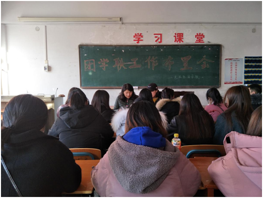 为了让学生会干部尽快投入学习和工作中,2019年3月6日,我系在2217教室召开了团学联工作布置会。艺术系学工办主任朱烁,辅导员秦瑶及学生会成员参加此次会议。