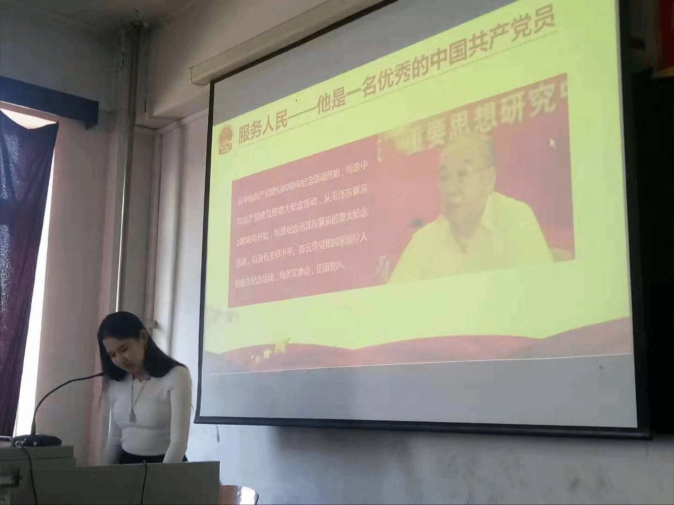 随后,课堂积极分子高画画以党内优秀先锋黄大年先生为课题,以点盖面的诠释了信念的力量和伟大生命的意义。心有大我、敢为人先、教书育人的敬业精神和甘于奉献的高尚情操值得我们学习和敬佩。