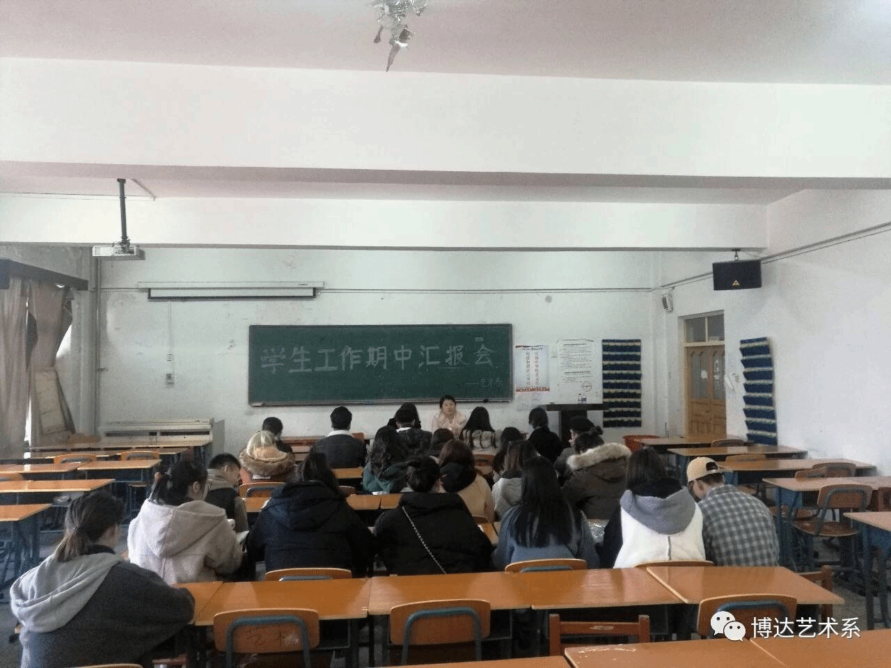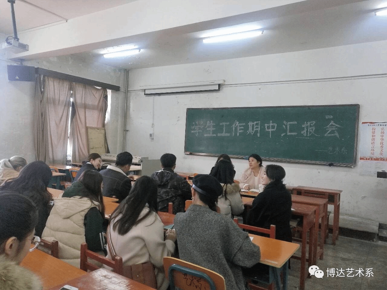 为推进我系学生工作高效、有序、有特色地开展,10月31日下午,我系在2221教室面向全体16级团学联学生干部召开期中工作汇报会,学工办主任朱烁老师和辅导员秦瑶老师参加会议。