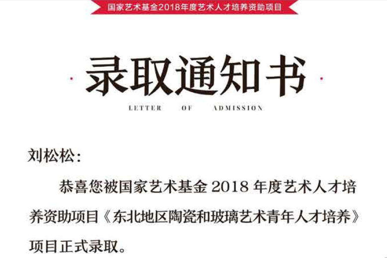 恭喜刘松松老师被国家艺术基金2018年度艺术人才培养资助项目《东北地区陶瓷和玻璃艺术青年人才培养》项目正式录取!