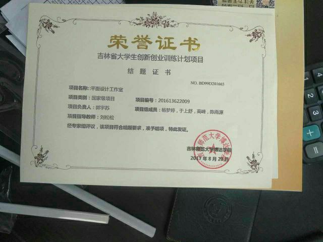 刘松松老师指导的《平面设计工作室》被评为国家级项目。