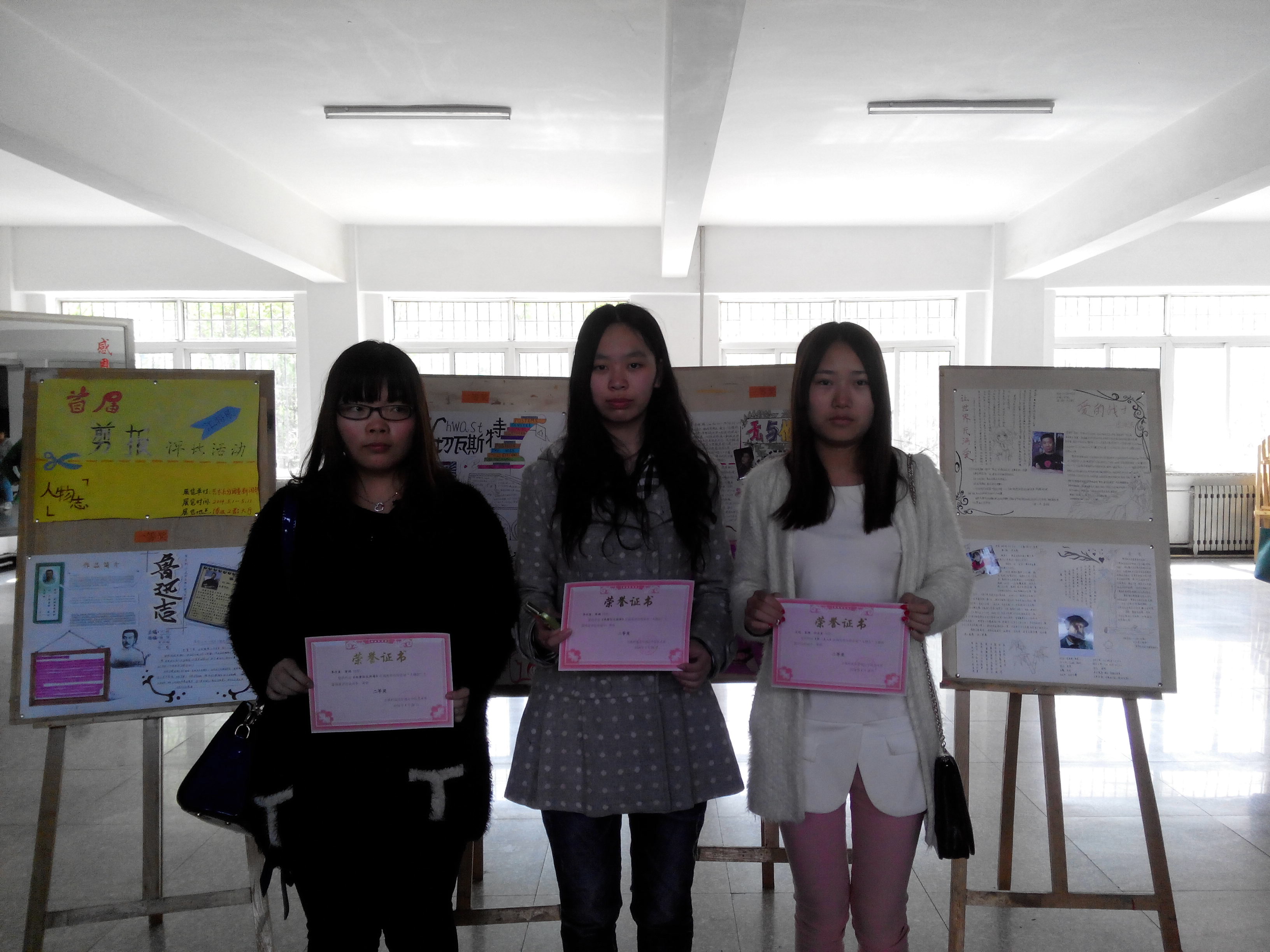 最终,12级杨园园、王俪颖、钱丽婷、石林主编的《天国之女——邓丽君》和13级刘程、薛强、赵郑楠、赵晴主编的《鲁迅志》夺得此次主题剪报评比活动一等奖,13级陈丽燕、苗潇静、林欢欢主编的《书香才女》和13级孙媛媛、姜鹿、刘金莹主编的《纳兰容若》获得“最佳版式设计奖”。