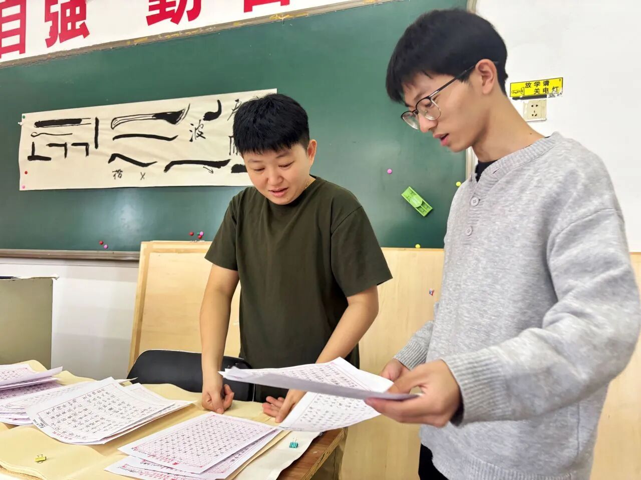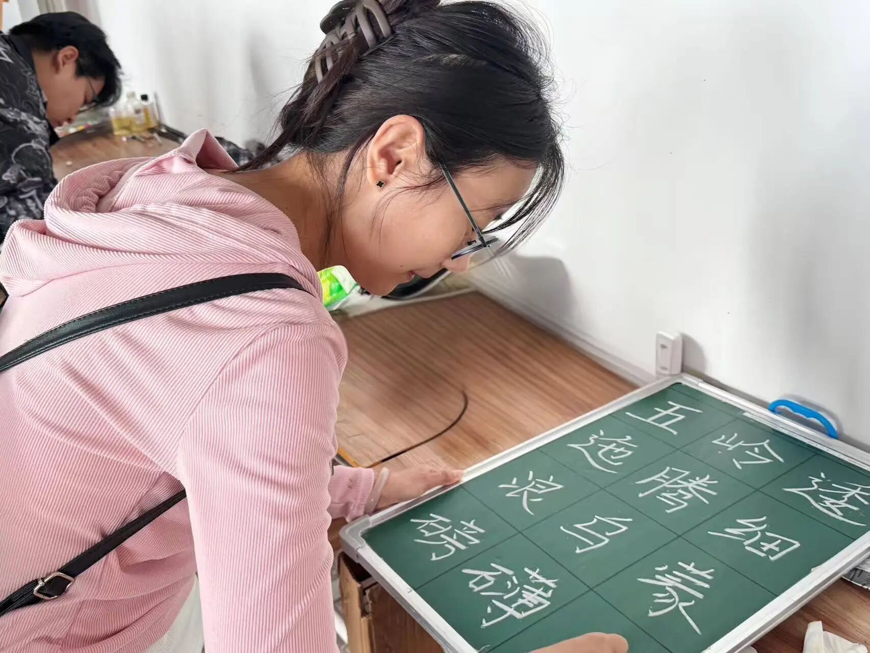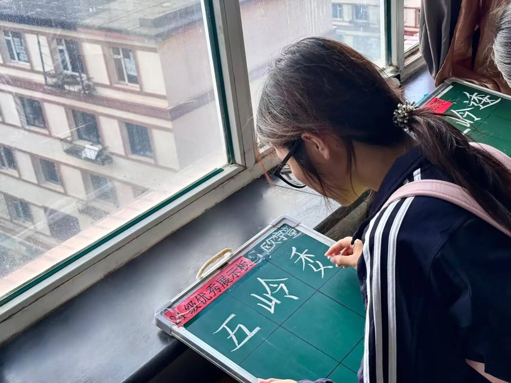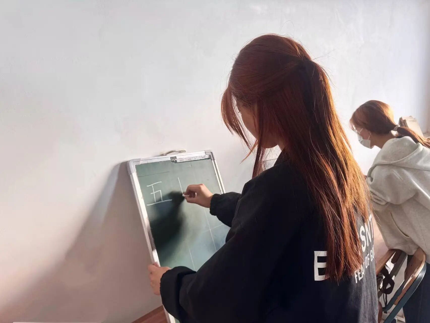 活动过程中,同学们始终保持高度专注的状态。书写粉笔字的同学,手持粉笔在黑板上规范运笔,神情认真,片刻间便呈现出工整清晰、兼具力度的字迹。