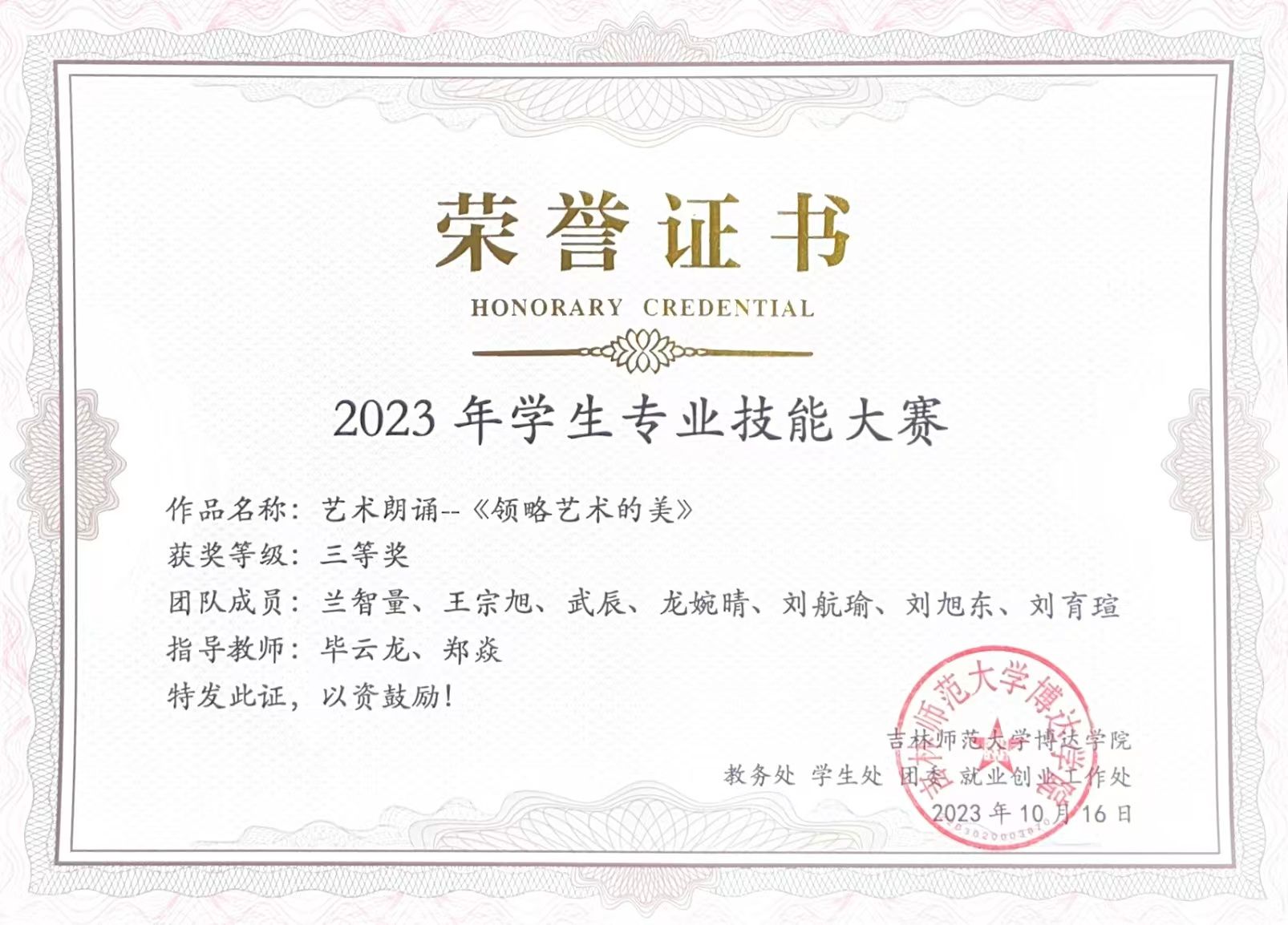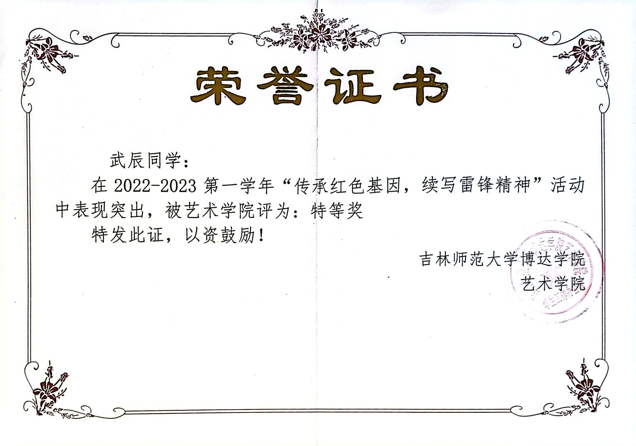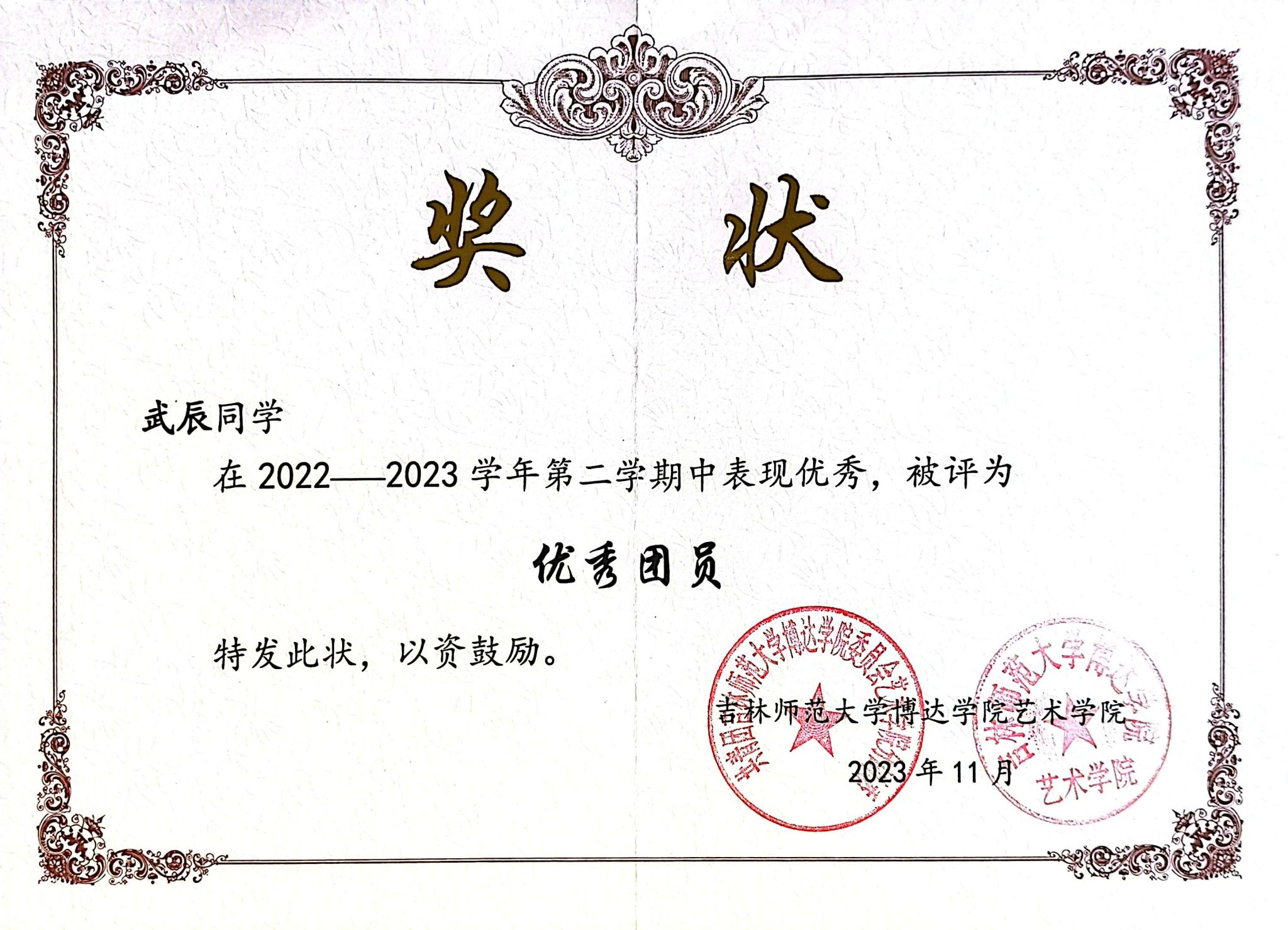 在2022-2023学年第二学期中被评为“优秀团员“荣誉称号