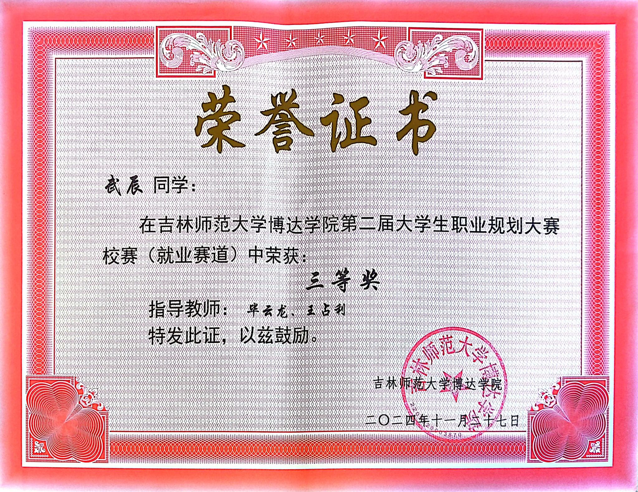 第二届大学生职业规划大赛校赛(就业赛道):三等奖