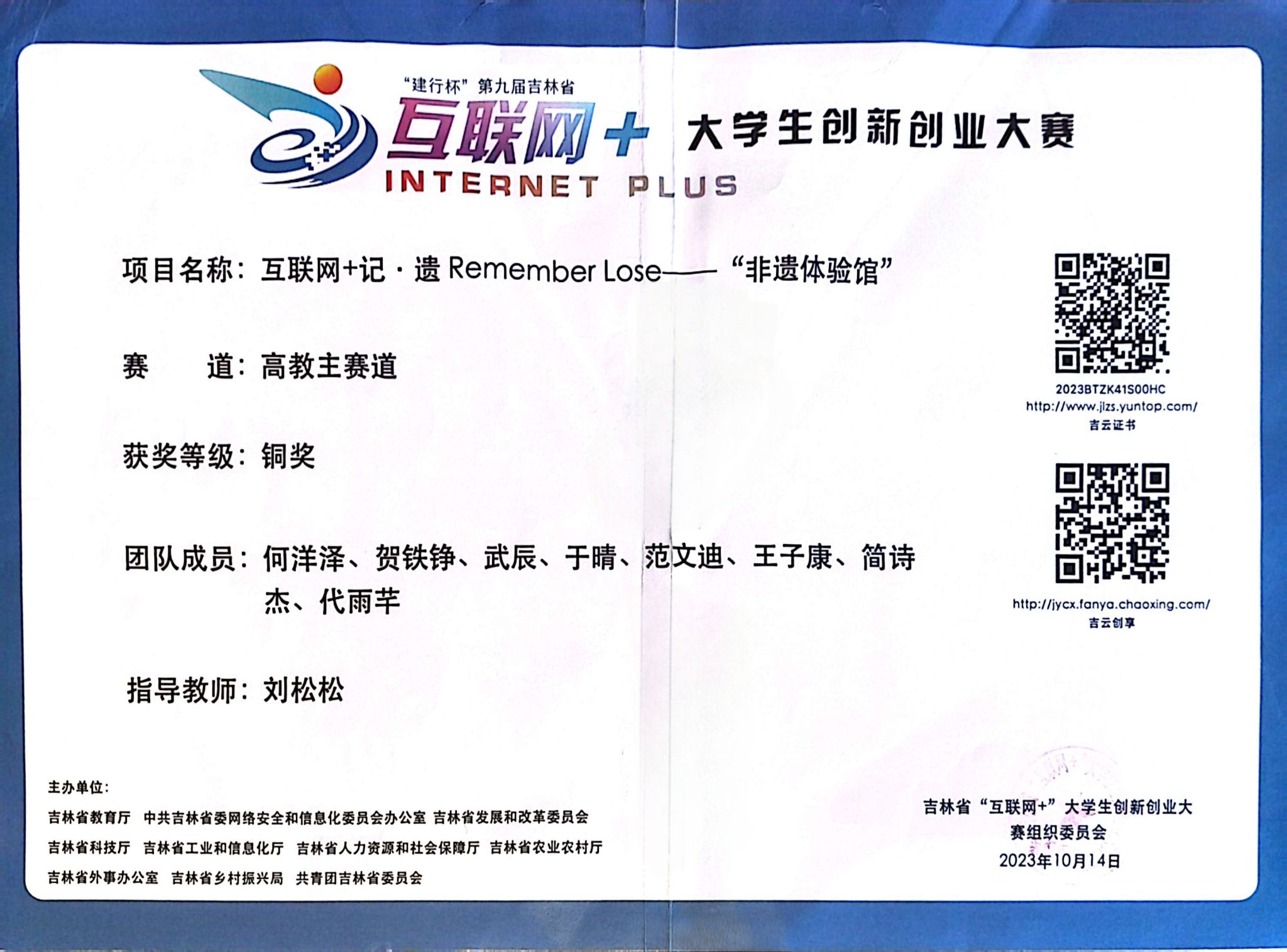 “互联网+“大学生创新创业大赛:高教主赛道铜奖