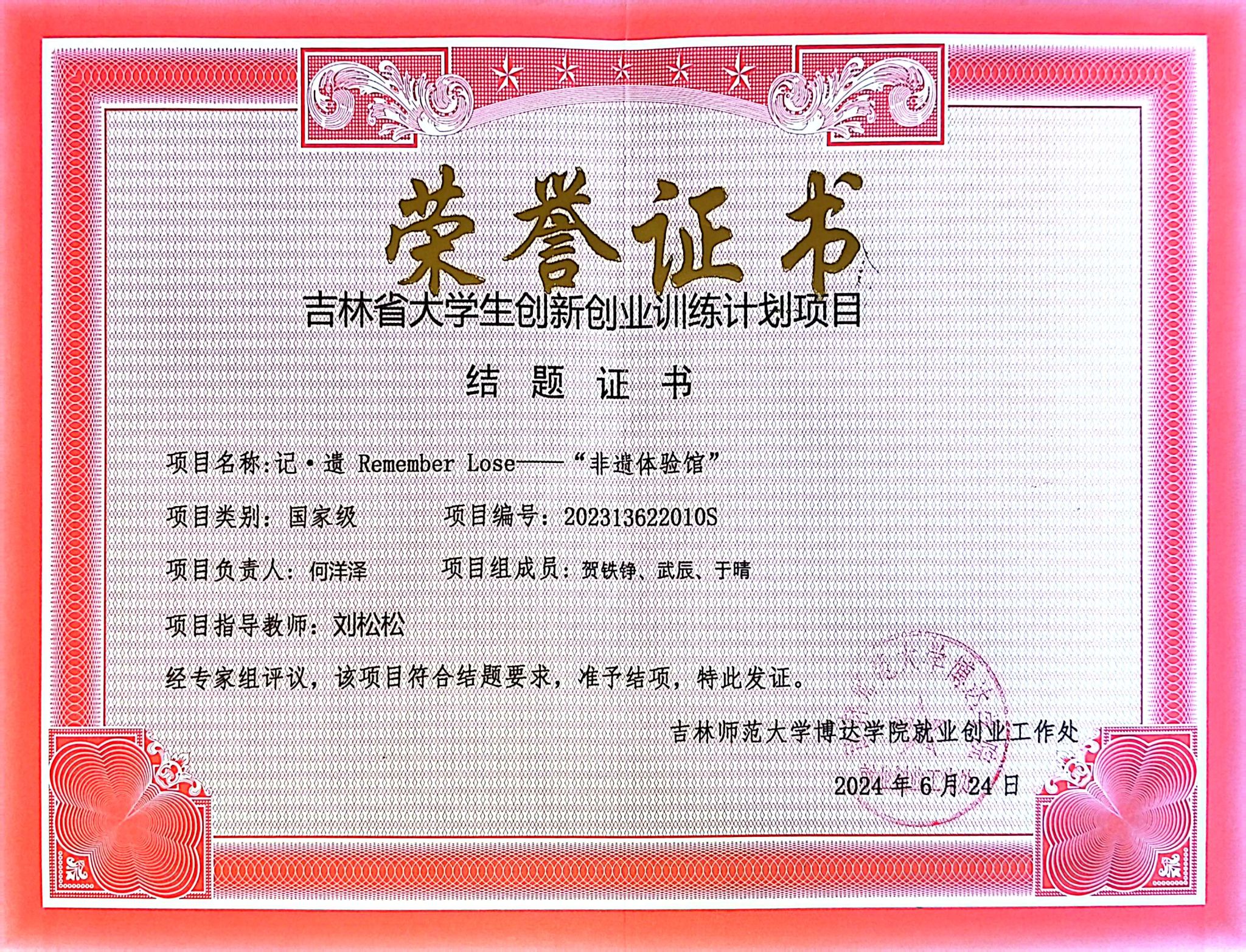 第四届全国青年大学生数字国防教育创新创意大赛:吉林赛区三等奖