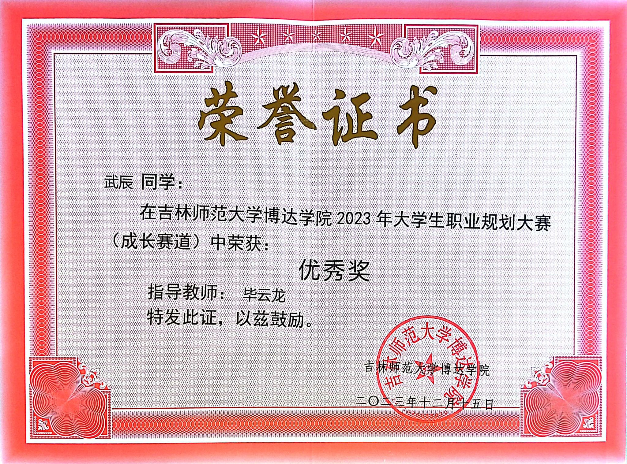 第一届大学生职业规划大赛校赛(成长赛道):优秀奖