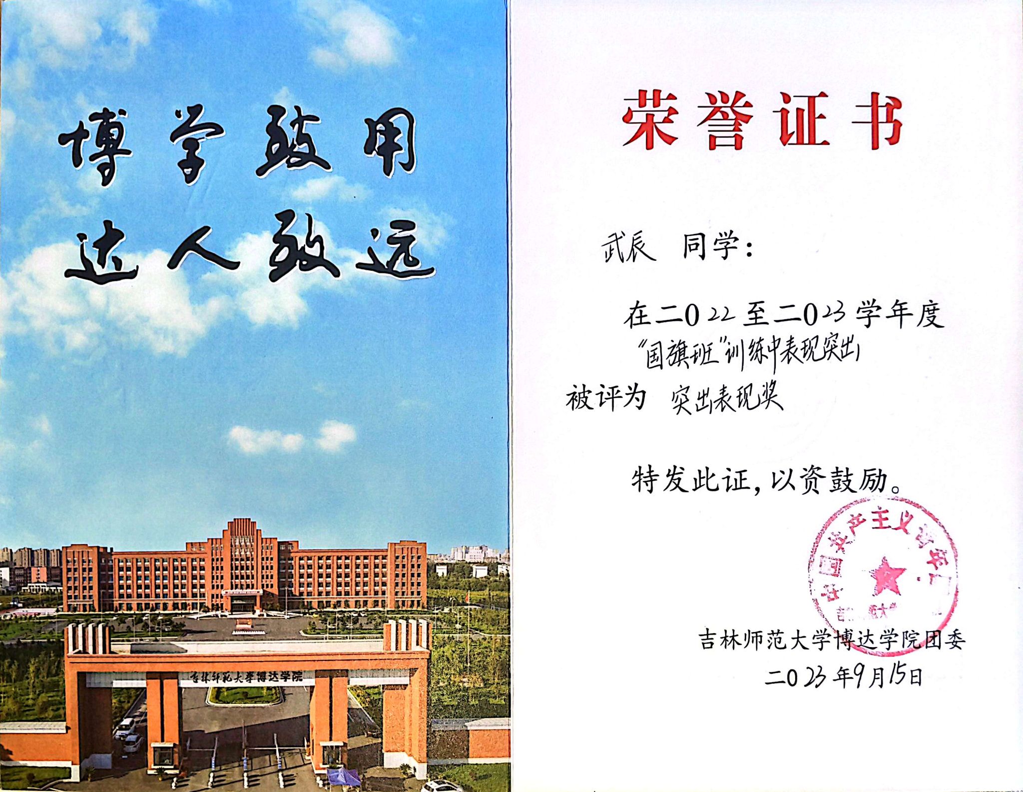 在2022-2023学年度校国旗班训练中被评为“突出表现奖”