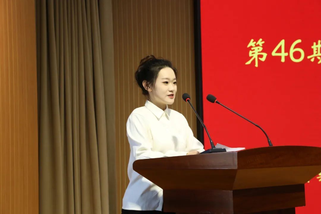 参训学员代表文学院张馨月做表态发言,作为新时代的大学生党员发展对象要践行初心使命,勇于担当作为,把学到的知识和理论转化为实际行动,积极投身到工作实践中去,在同学中发挥先锋模范带头作用,争取早日成为一名光荣的共产党员。