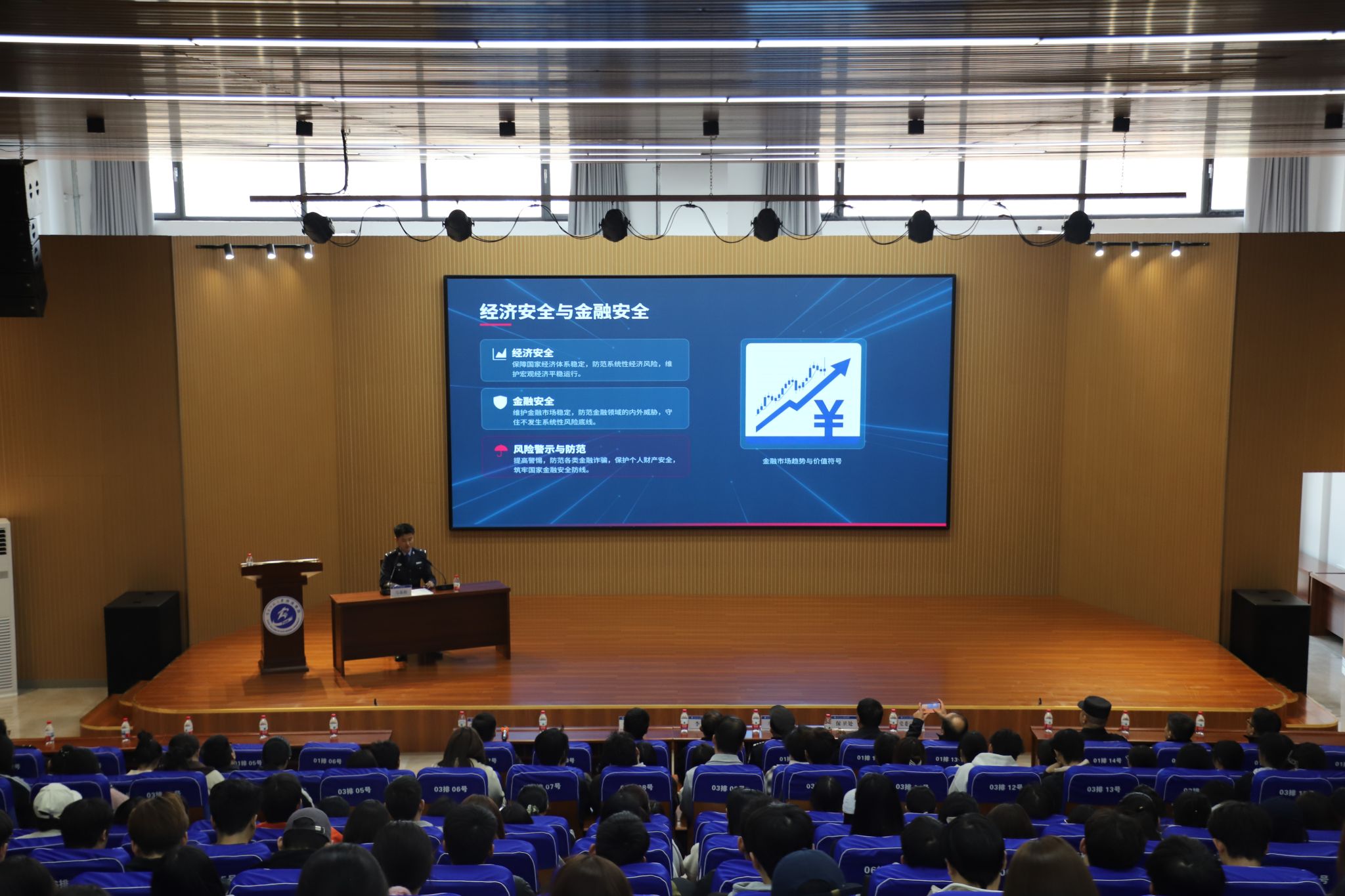 讲座中,马基程警官以“青春与法同行,共筑国家安全”为主题,对总体国家安全观展开系统阐释,精准解读其科学内涵,深刻剖析新时代国家安全“总体性、系统性”的核心要义。围绕国家安全核心内涵、当前国家安全面临的风险隐患、大学生践行维护国家安全的行动自觉三个方面展开系统讲解。马基程警官结合典型案例,深入阐释了国家安全与每个人的密切联系,引导同学们深刻认识维护国家安全的重要性,鼓励大家从日常点滴做起,主动履行维护国家安全的义务,共同构筑国家安全的坚固防线。