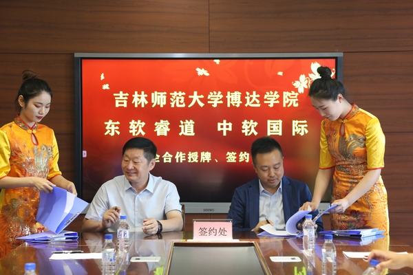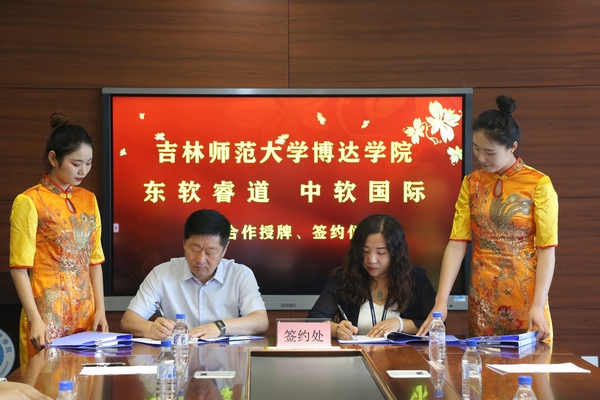 仪式上,常务副院长王国军分别与东软睿道总裁助理兼东北区总经理李冰、中软国际教育集团大区总经理赵丹签署校企合作协议。