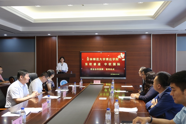 王国军在致辞中说,博达学院成立以来,一直致力于为社会培养知识基础扎实、实践能力过硬、综合素质良好的基础教育后备人才以及个性鲜明、全面发展,富有创新精神和社会责任感,国家经济和社会发展所需的复合型、应用型、技能型高级专门人才。博达学院与东软睿道、中软国际两企业正式签约,互相支持、双向介入、优势互补、资源互用、利益共享,既能发挥学校和企业的各自优势,又能共同培养社会与市场需要的人才,既顺应市场经济发展规律,又是一项具有重要意义的公益事业,有利于校企双赢,更能使学生增强实践能力,拓宽知识领域。