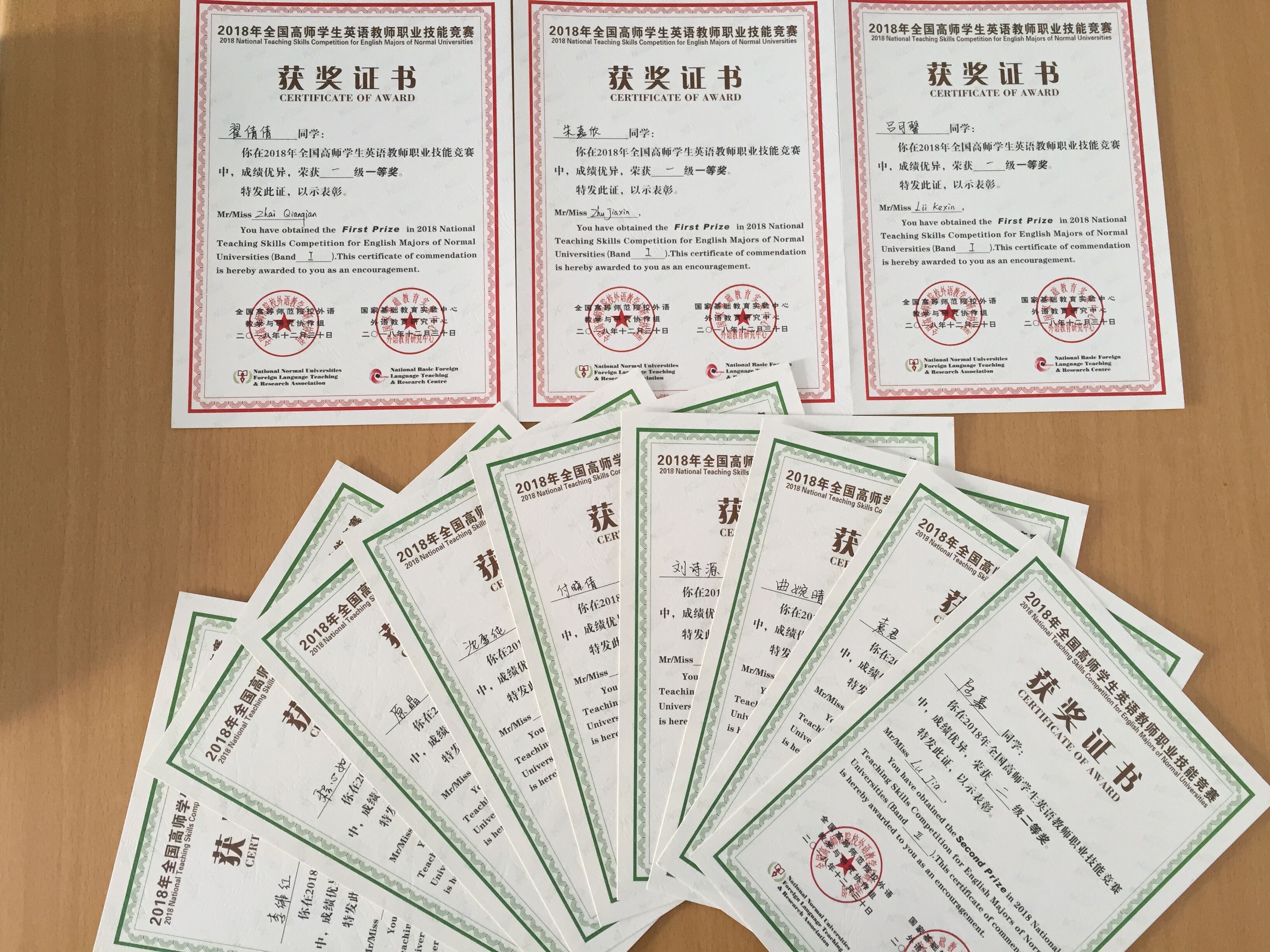 为有效提升学生教育教学知识与能力,充分做好赛前准备,西语系于本学期初就给每位参赛选手都配备了专门的指导教师进行个性化辅导,系主任赵晓光老师还专门为参赛选手做了新课标解读专题讲座。全体指导教师尽心竭力,利用业余时间义务对参赛选手悉心点播,经过师生为期半年的辛苦努力,参赛学生终于不辱使命,喜获佳绩。