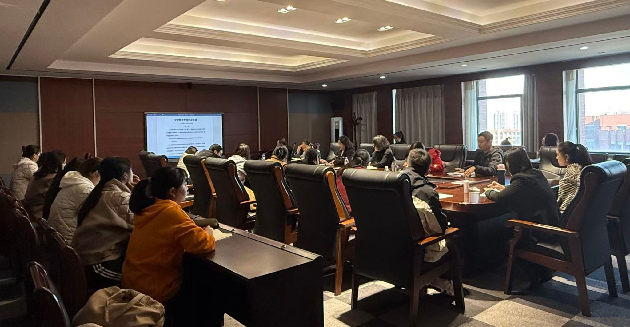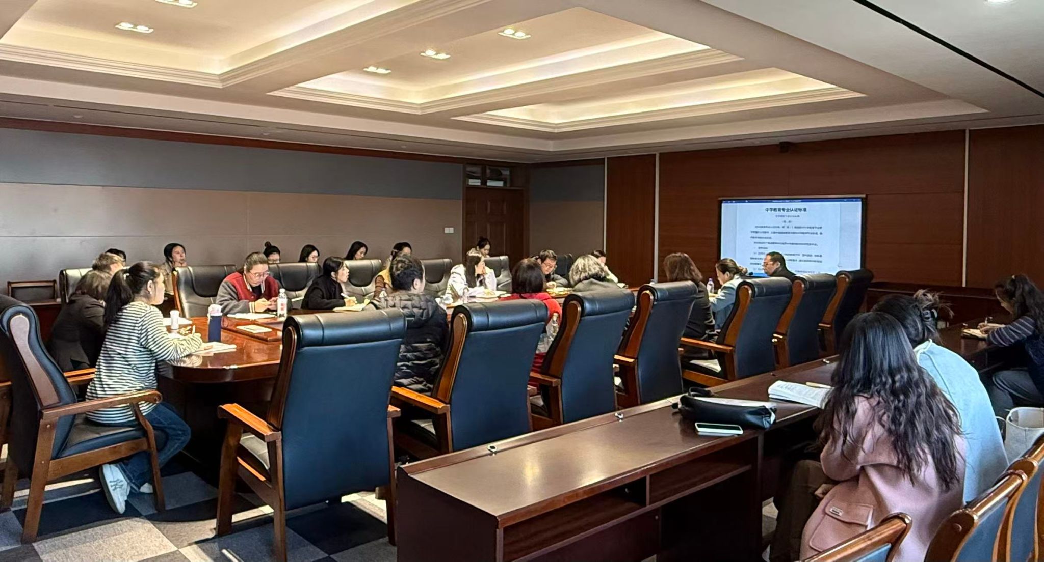 为推动师范专业认证工作顺利进行,师范专业认证办公室于10月23日上午在综1627会议室召开师范专业认证申报材料撰写指导会。本次指导会特邀文学院胡院长担任主讲人,各师范专业负责人、教学院长、认证办公室成员及教务处全体成员参加会议,围绕认证工作申报情况,理清认证理念、完善认证报告等方面展开深入交流。